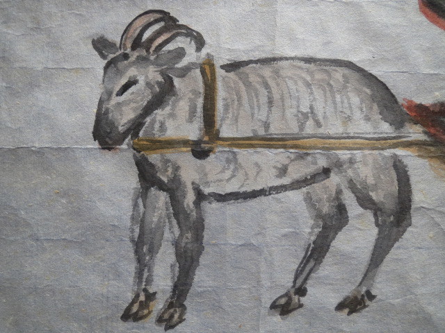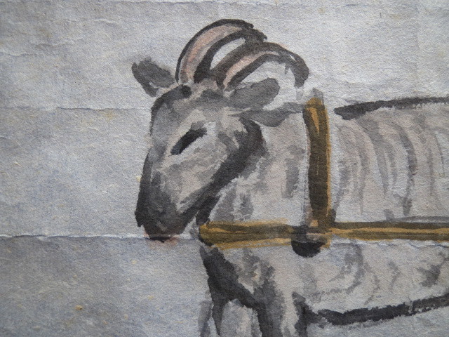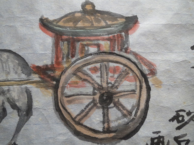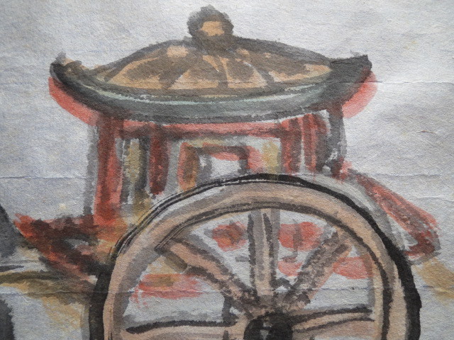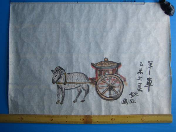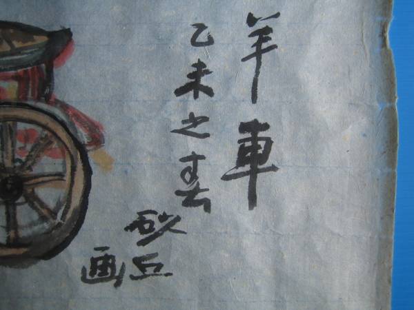 ●決済前に現品お送りいたします。ご確認いただきご購入いただけるようでしたら、決済お願いいたします。お気に召さない場合は返品していただいて結構ですが、●返品送料は落札者様のご負担でお願いいたします。(ただし、当方に誤り、責任がある場合は当方が返品送料負担します。)●小松砂丘、自筆水墨画「羊車図」昭和30年作品、小松砂丘(明治29年~昭和50年)は「金沢最後の文人墨客」といわれ、俳句、画、版画、書、陶芸、などに味わい深い作品を多く残しました。石川県俳文学協会の初代会長を務めました。作家、五木寛之さんとも親交があり、五木さんのエッセイ「みみずくの夜(ヨル)メール」(朝日新聞2004年8月30日付け)の中で「こんどはじめて砂丘の堂々たる大作を何点も見ることができ、あらためてその才能に震撼させられた。・・中略、・・その画才は長谷川等伯にも、棟方志功にもひけをとらぬものだとわたしは思う。」と書いています。この作品は砂丘、59歳作品で出品者自宅に保管されていたものです。他者を経由していません。 仕舞い込んで眠っていました。年代物なので全体に経年劣化があります。ヨゴレ、シミ、キズ、折れ、などあります。写真で判断できる方の入札をお願いします。材質、紙、サイズ、約54センチ×38センチ、表装はもちろん裏打ちもしてありません。●「羊車」は宮中で用いる美しく飾った車、また法華経、三車火宅の喩にも登場します。●真筆の保証をいたします。出品者と小松砂丘さんとの関係を示す資料の提示もいたします。万が一「真作」でなかった際には返品を受けます。発送は(定形外郵便郵350円+特定記録160円合計 510円)を予定しております。●自宅整理のため出品いたします。