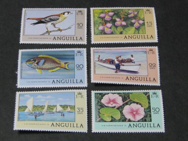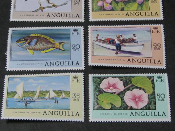 【№198】 アンギラ切手 1977-78年 鳥・魚・ボート・他 6種