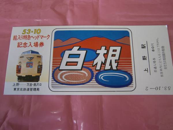 ☆絵入り特急ヘッドマーク記念入場券/普通入場券・上野駅80円