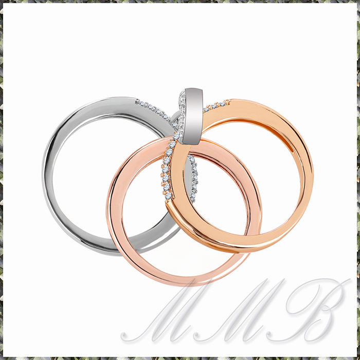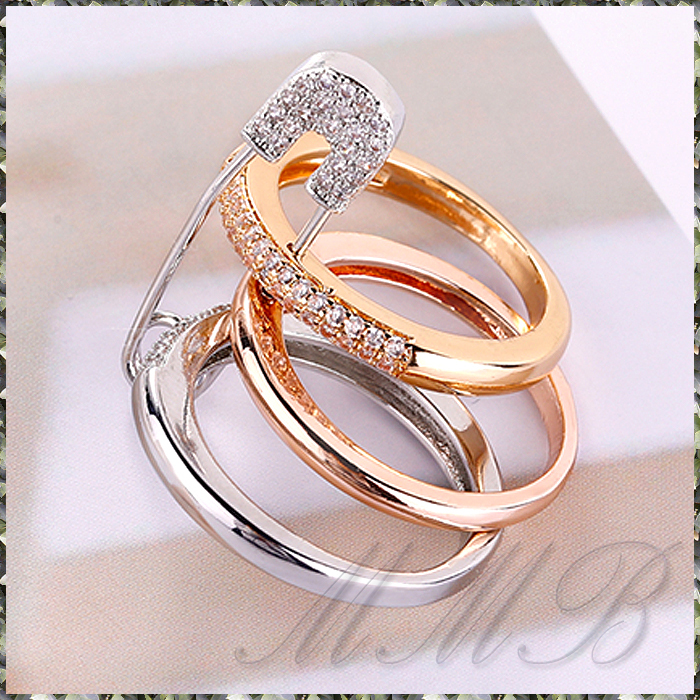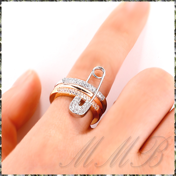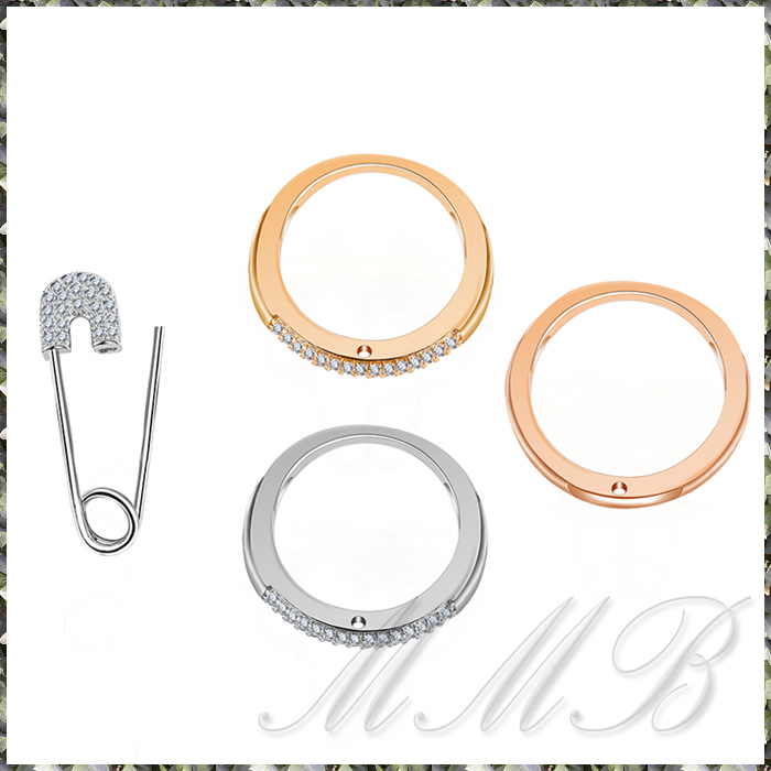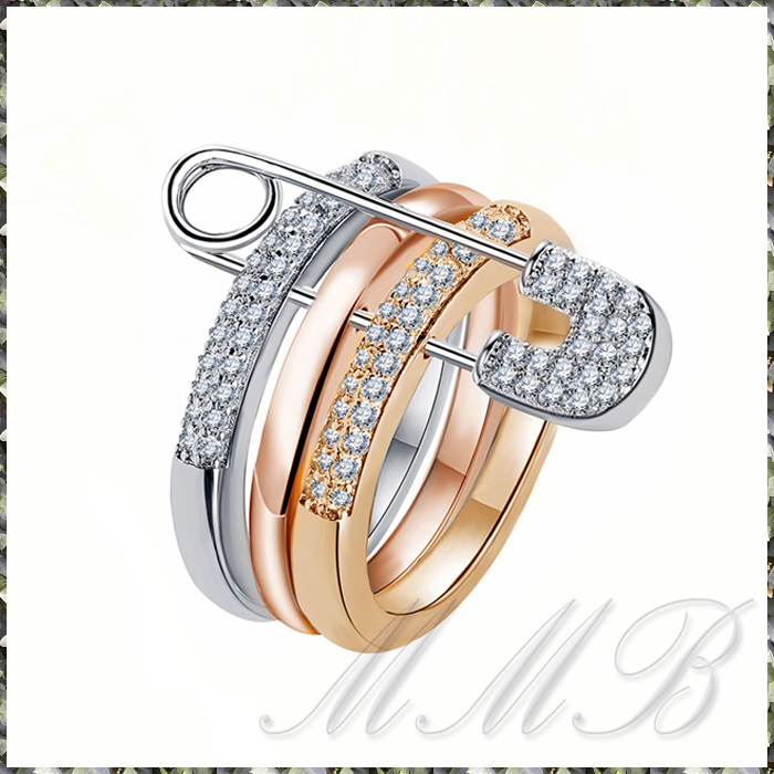 Yellow Rose White Gold 3 Color スリー ゴールド カラー 安全ピン ホール付き マイクロ クリスタルCZ セット リング です。