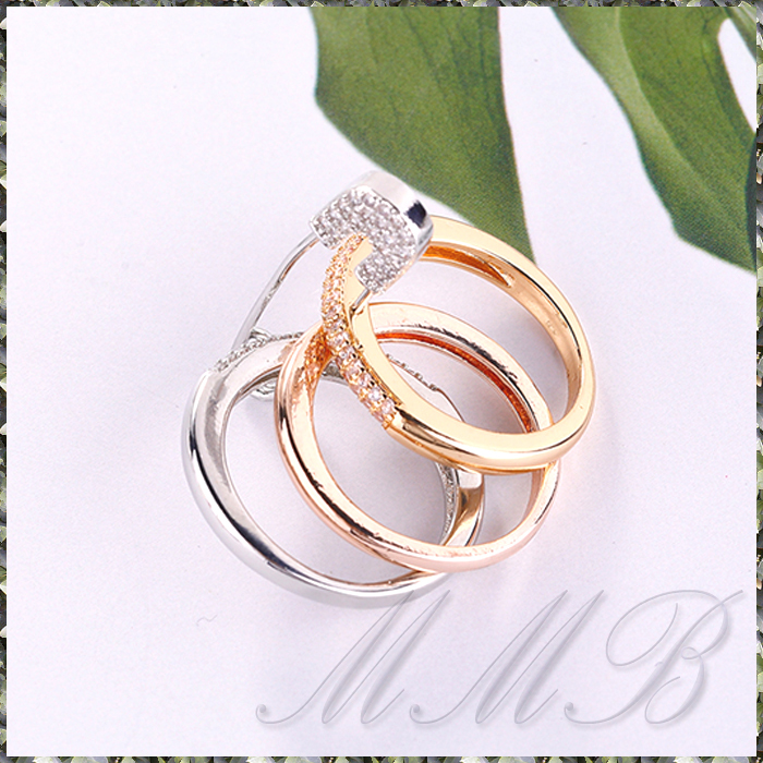 [RING] Yellow Rose White Gold 3 Color スリー ゴールド カラー 安全ピン ホール付き マイクロ クリスタルCZ セット リング 12号