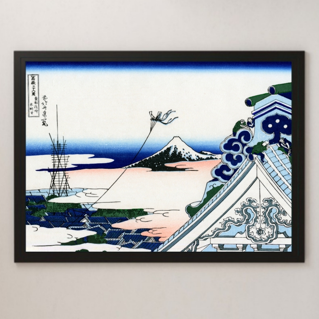葛飾北斎『富嶽三十六景 東都浅草本願寺』浮世絵 アート 光沢 ポスター A3 バー カフェ 居酒屋 クラシック インテリア 日本画 富士山 凧