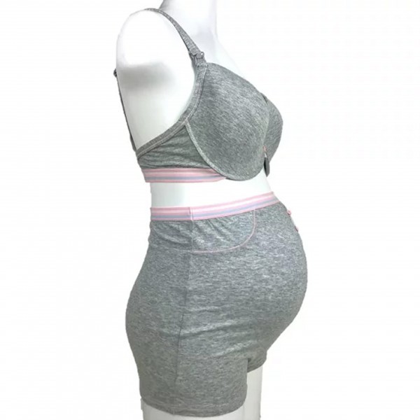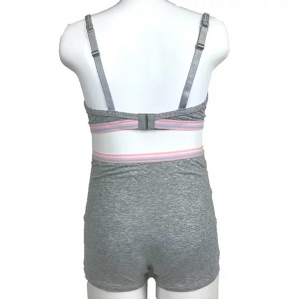 綿ブラ+ショーツが肌に優しい♪ スポーティカジュアルマタニティブラジャー&ショーツ。 産前産後の敏感な時期に、肌に優しい綿素材の ブラジャーとショーツセットです。 モールドカップを使用しております。 マタニティ・授乳期もきれいなバストラインを保ちたい方にオススメ。 授乳対応タイプなので、妊娠初期~産後(授乳期)まで長くお使いいただけます。 授乳口はストラップオープンタイプ。 片手でパチン!とワンタッチで授乳が可能です。 デザイン性だけでなく、授乳のしやすさにもこだわりました。 ホックは2列4段階に調節することができ、 産前から産後までの体型の変化にも柔軟に対応可能です。 ショーツはおなか全体をすっぽり包む丈長タイプ。 妊娠期のおなかを冷えからしっかり守ります。