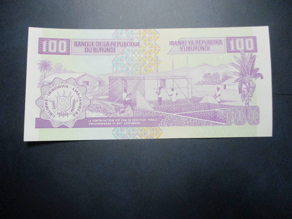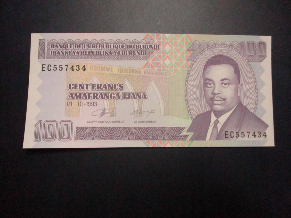 アフリカ・ブルンジ 100フラン未使用紙幣 1993年版 P29