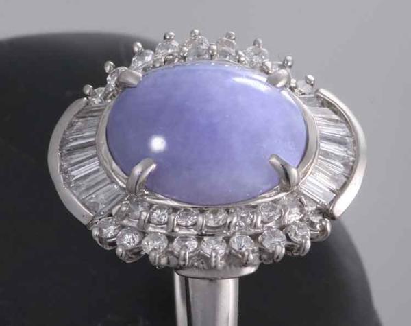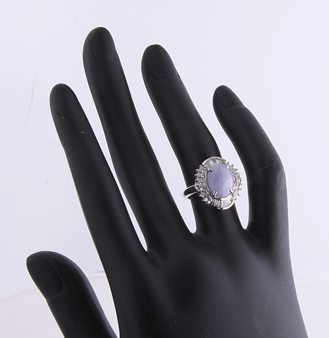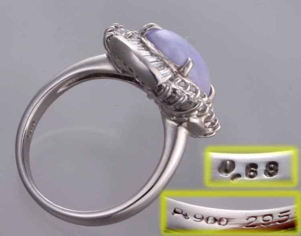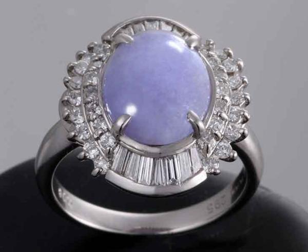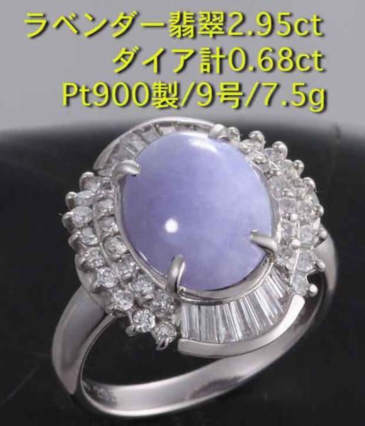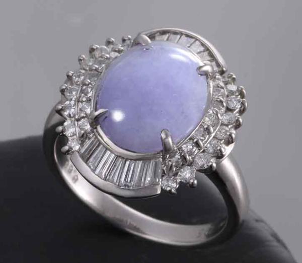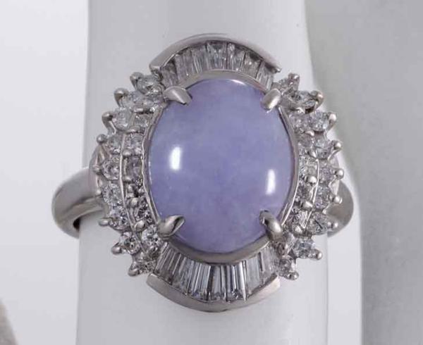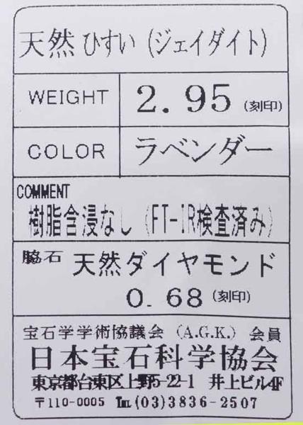 日本宝石科学協会のソーティング付、Pt900製ラベンダーヒスイリングです。