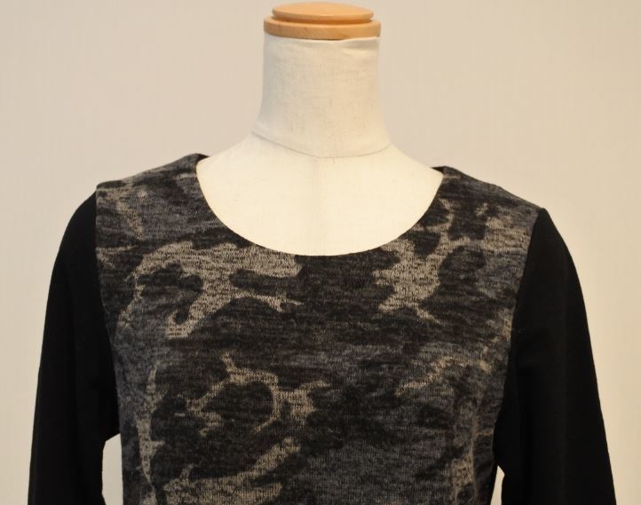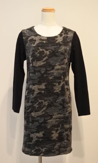 piacere ピアチェーレ ワンピース 長袖 ミニ タイト 秋冬 迷彩柄 グレーx黒 wtnbmnk k2f0307★
