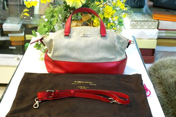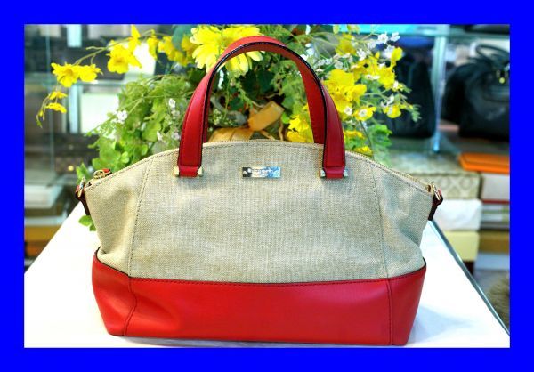 | ■商品名○美品 ケイトスペード kate spade コットン レザー 2Way ハンドバッグ B0406 200317 | |||||||||||||