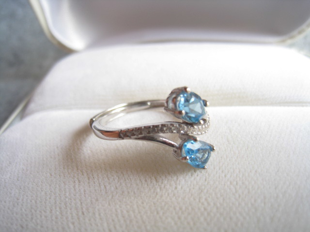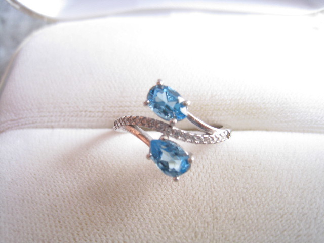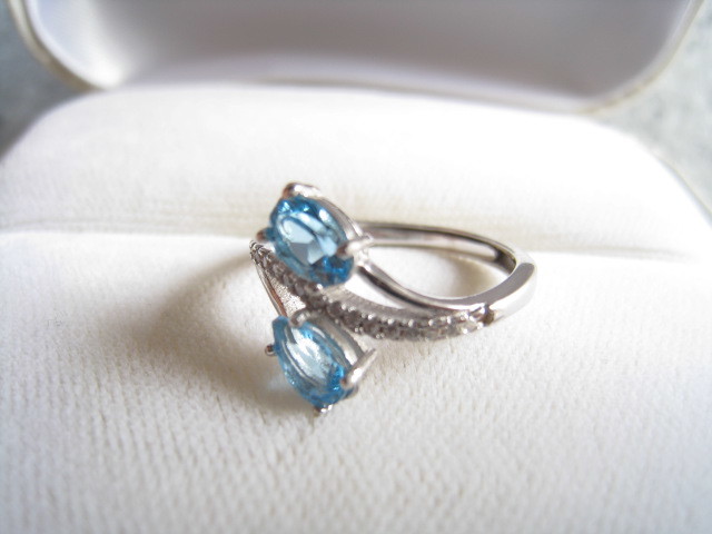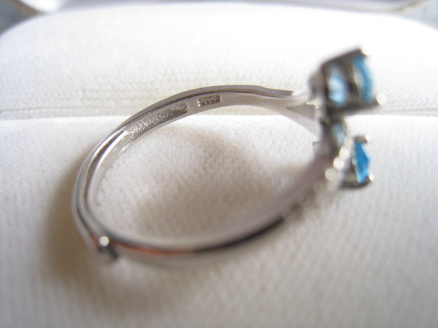 ◇ 石質 中石:天然ブルートパーズ約6mmx4mmx2粒 脇石:キューピックジルコニア