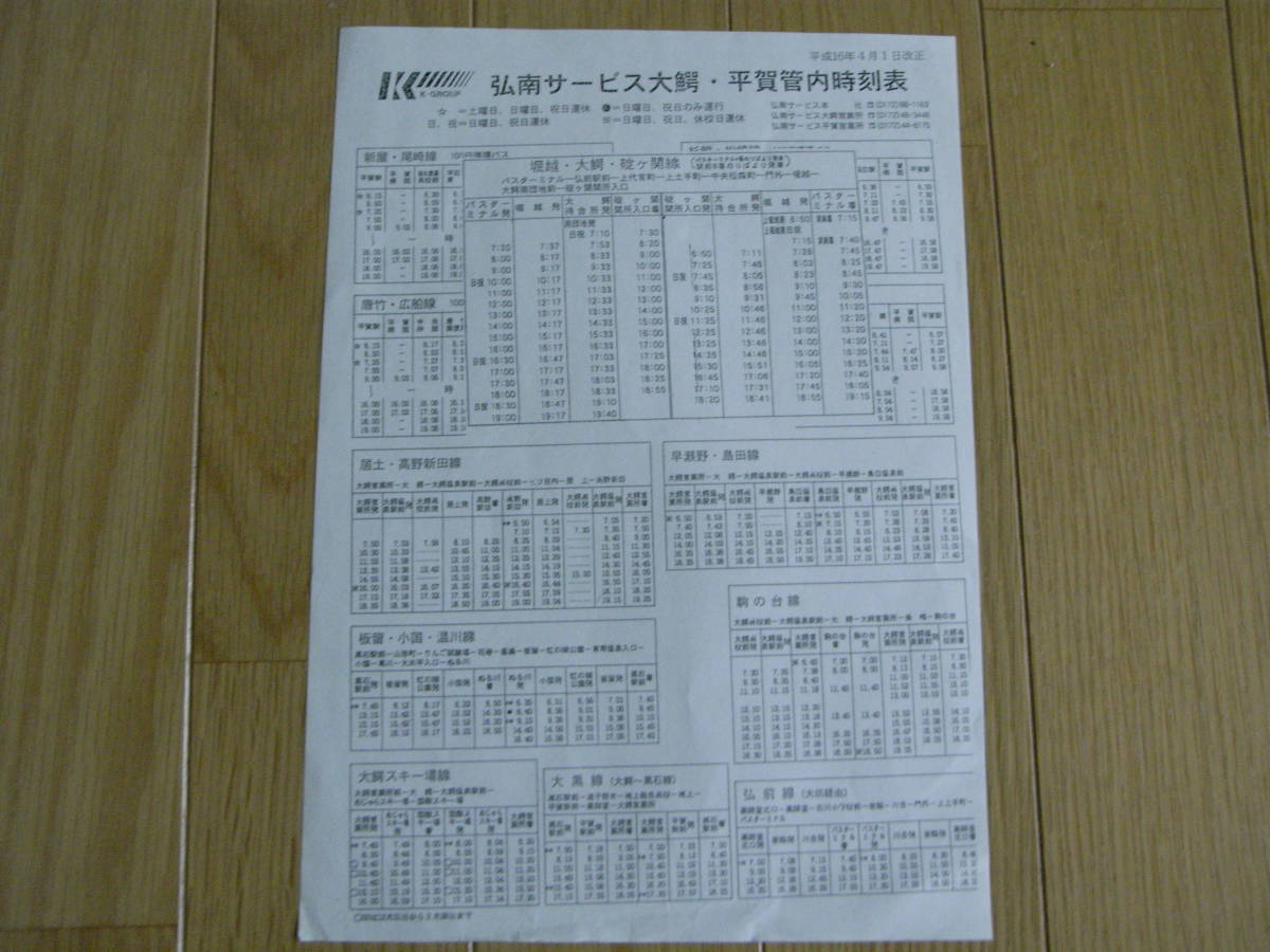 弘南サービス大鰐・平賀管内時刻表 平成16年4月1日改正 バス時刻表