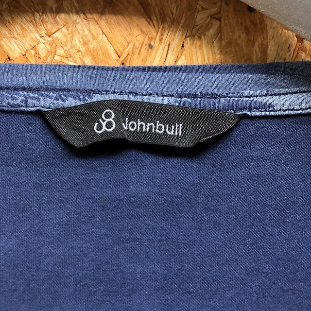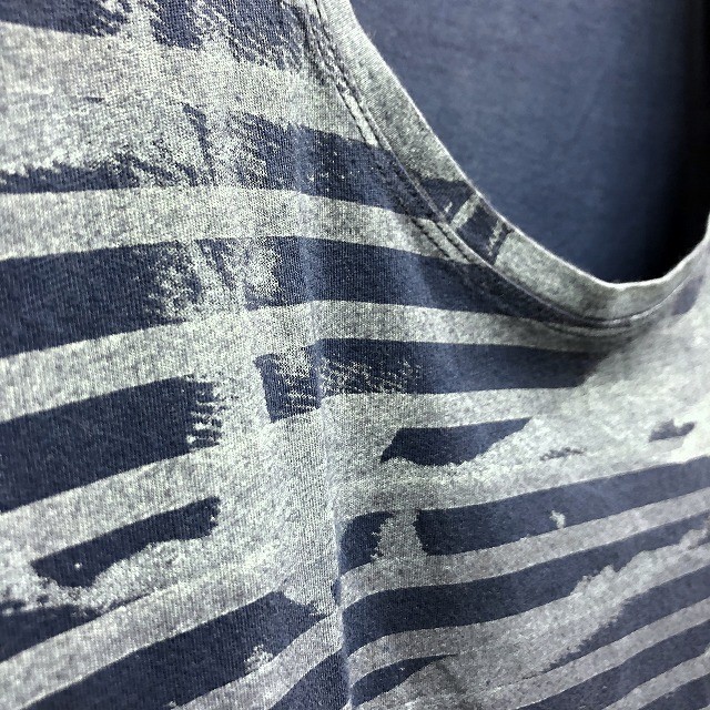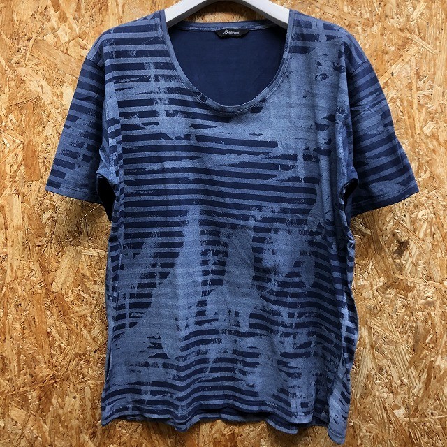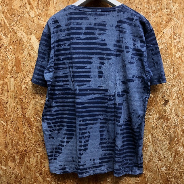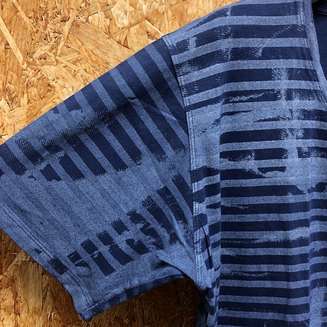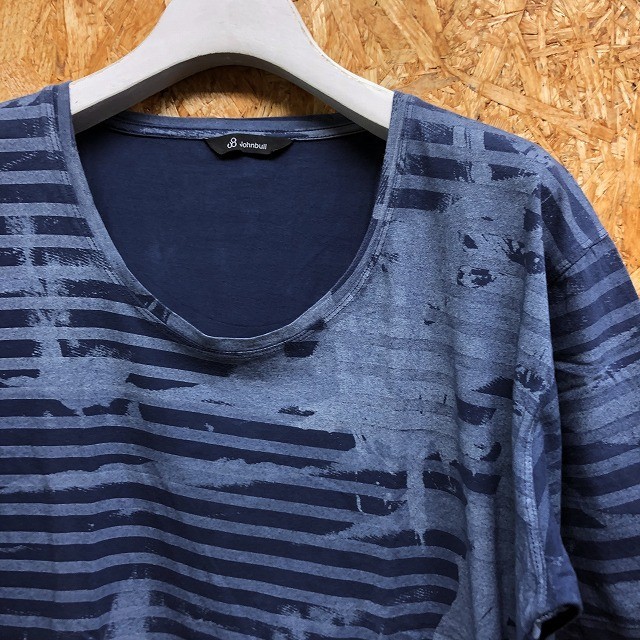 商品タイトル | Johnbull ジョンブル Lサイズ メンズ 若干薄手 Tシャツ ボーダー×ペイント風プリント Uネック カットソー 半袖 綿100% ブルー 青 |
