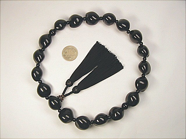 ●商品サイズ:主玉中の最大珠玉:直径(幅)約25.5ミリ、長さ約23.8ミリ、厚み約20ミリ(他の珠のサイズもほとんど同大)、数珠外周約715ミリ(共に最大値)、重さ約72グラムです。(XP2009.01.15)