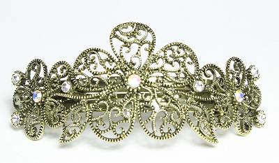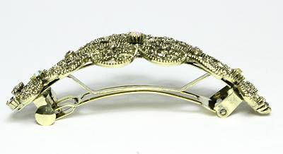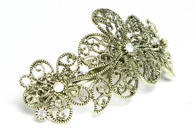 ラインストーン 透かし柄 3個花 バレッタ ゴールド古び