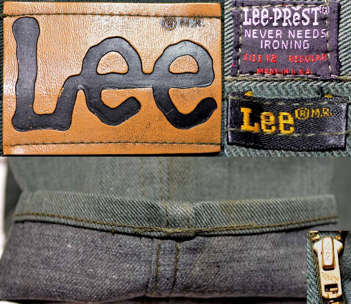 60's頃のLEEツイルパンツです。復刻、レプリカではありません。『ディテール紹介』アメリカ製、タロン42ジッパー、ユニオンチケットあり、スリムです。 『状態』スレ、キズなど(左スネ辺りに擦れたような小傷、他シミなど)USED感があります。着用は少なく、まだノリが残っていて生地は硬い状態です。 『色落ち、特徴など』程度良好です。非常に珍しいダークグリーンで、穿きやすい良い色だと思います。ボーイズ表記の12ですが、 メンズサイズの27インチ相当程度だと思います。女性か細身の男性に。
