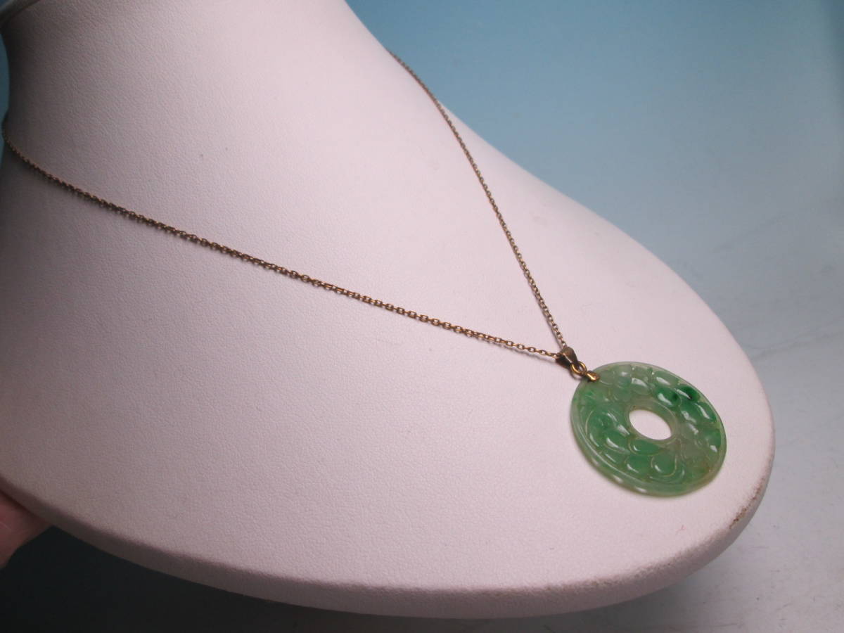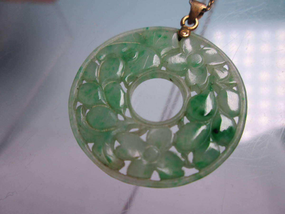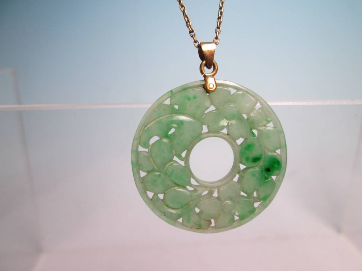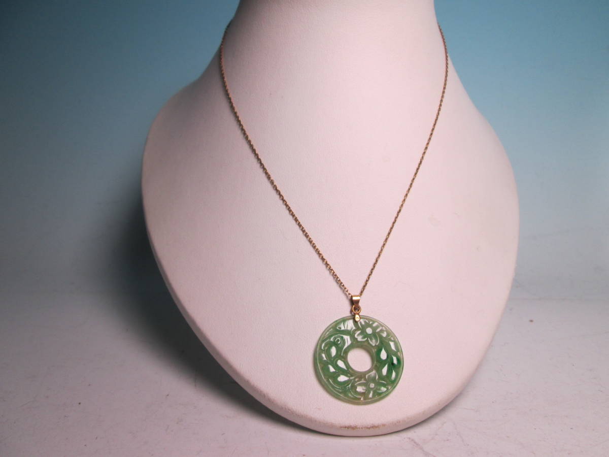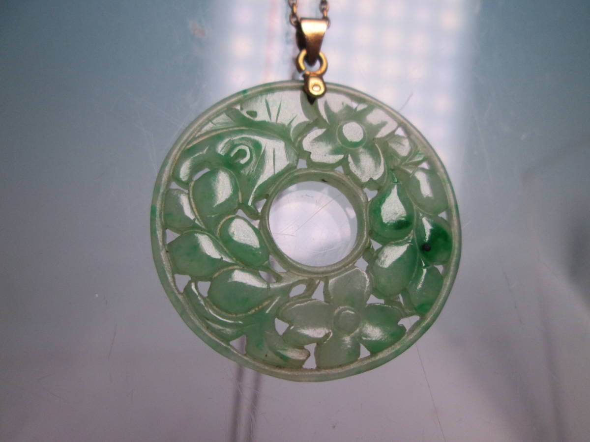 【江月】☆K18 本翡翠 花の透かし彫刻のペンダント&ネックレス 5,8g