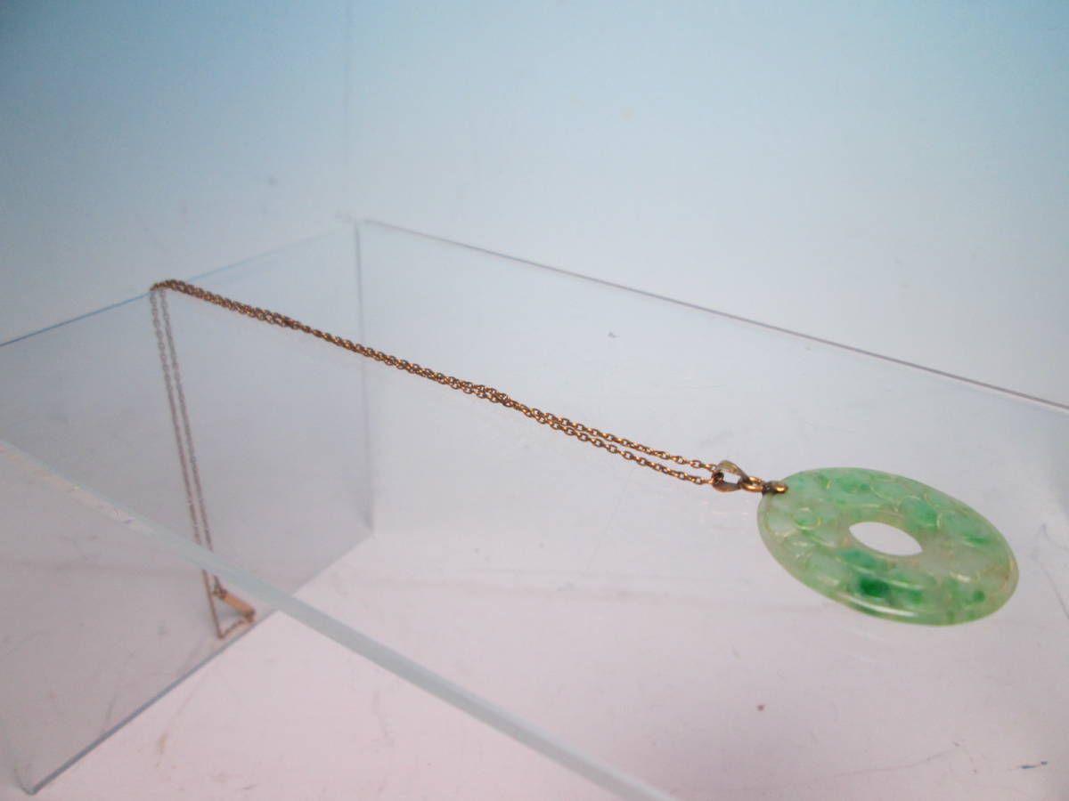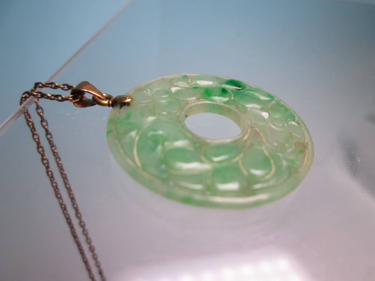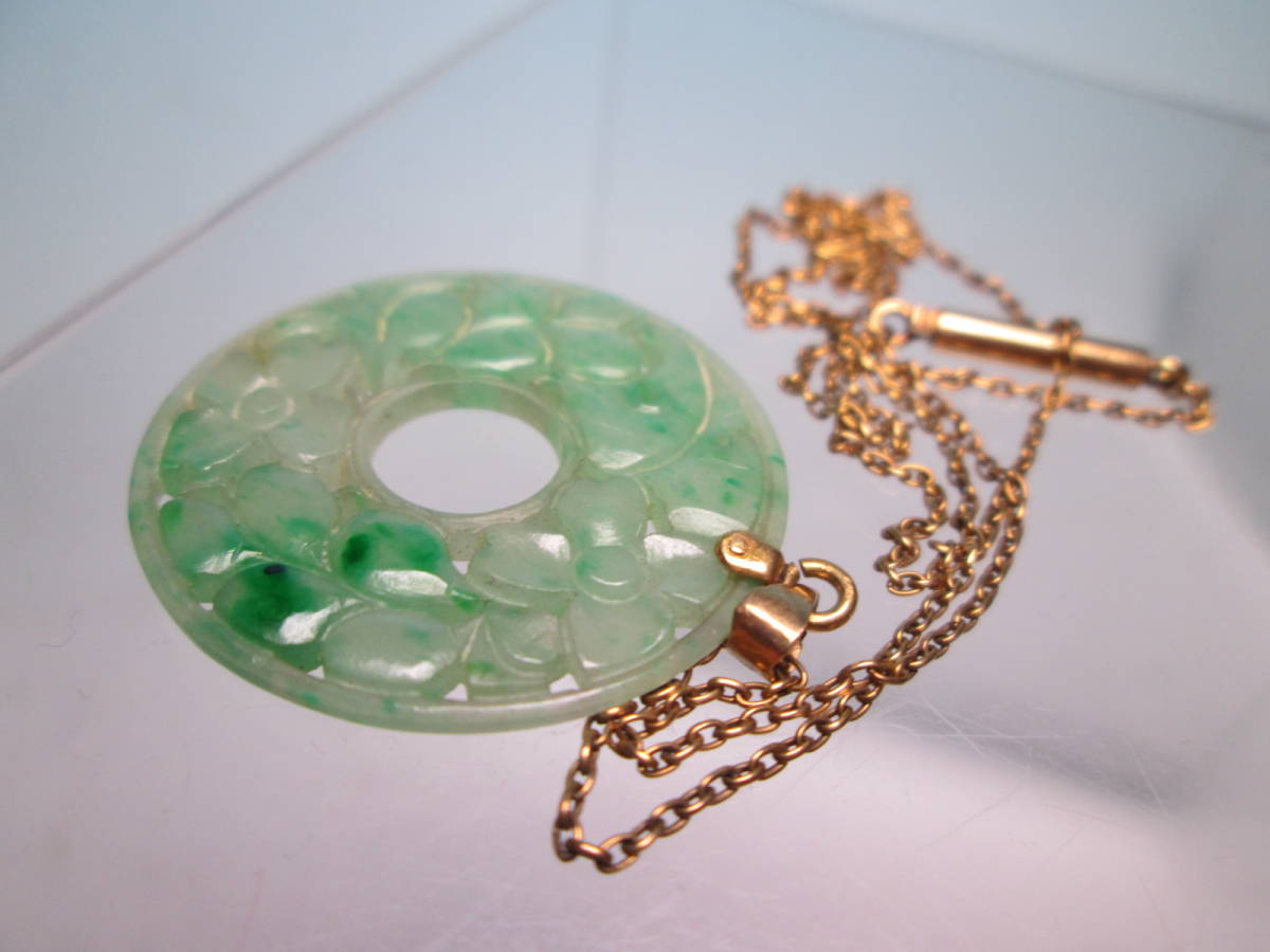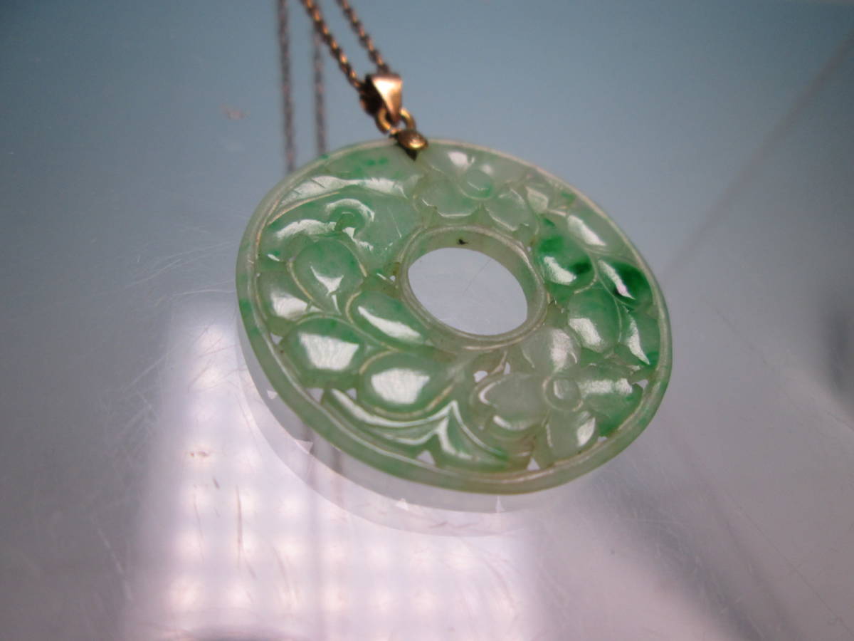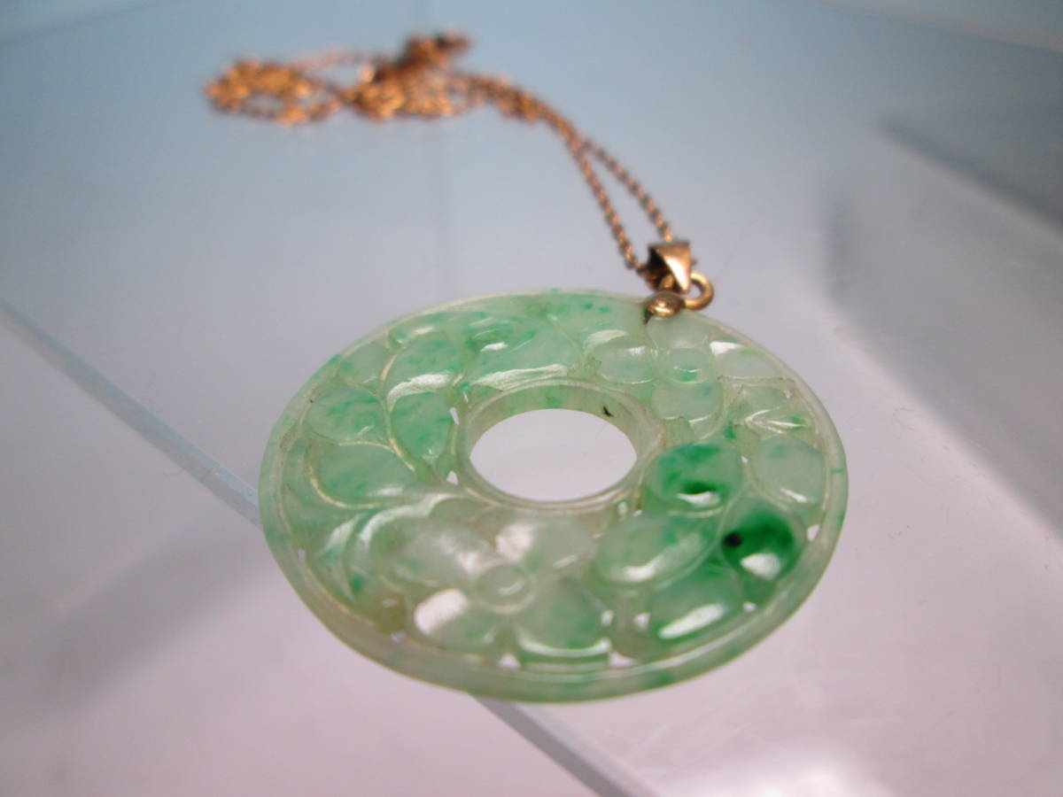 【江月】☆K18 本翡翠 花の透かし彫刻のペンダント&ネックレス 5,8g