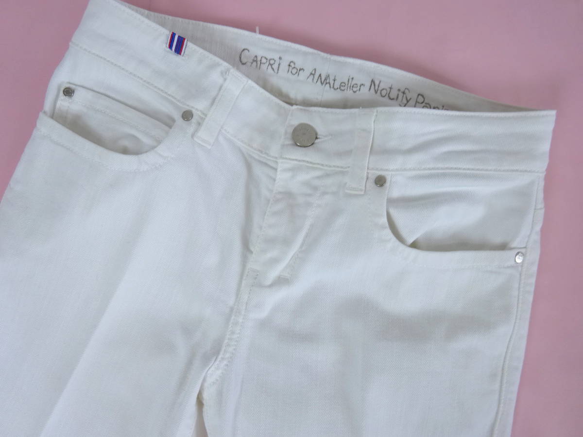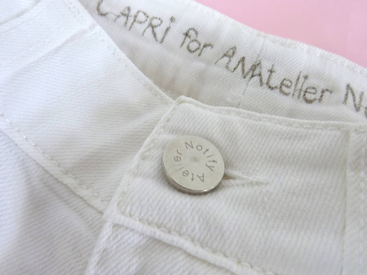 Atelier Notifyアトリエ ノティファイ クロップド カプリデニムパンツ ホワイト コットンストレッチ 24