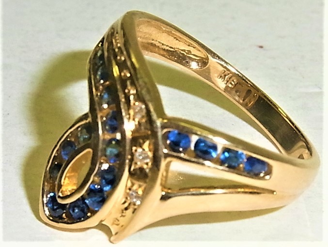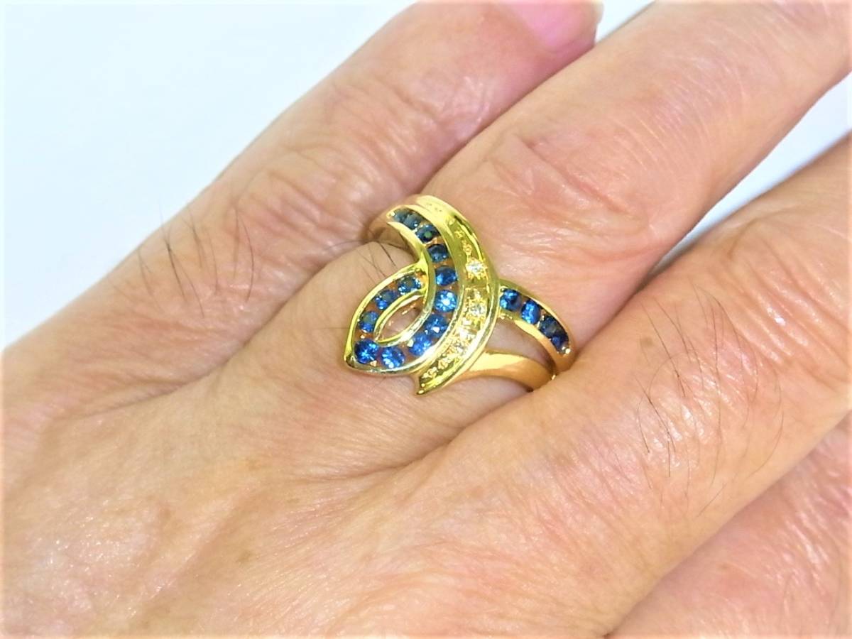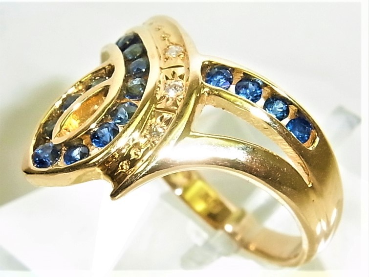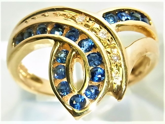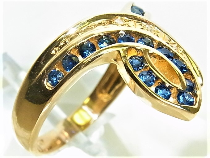 【東京 谷中 質屋おぢさん】K18 18金 リング 指輪 サファイヤ ダイヤ入 d