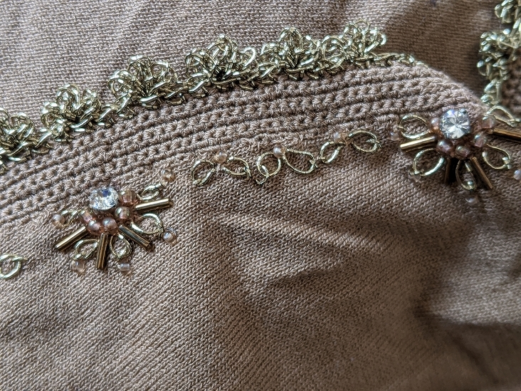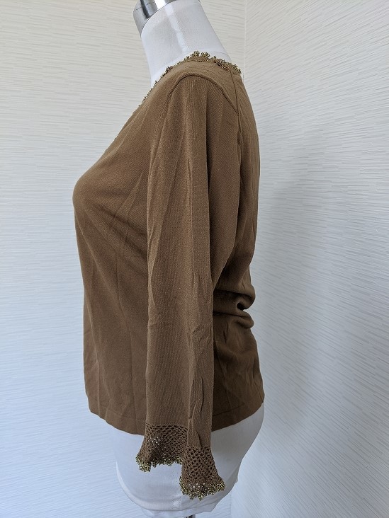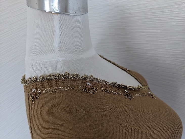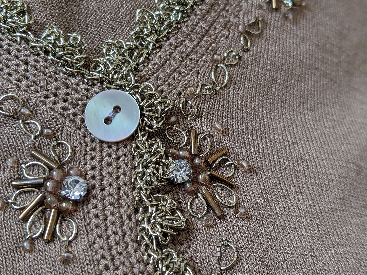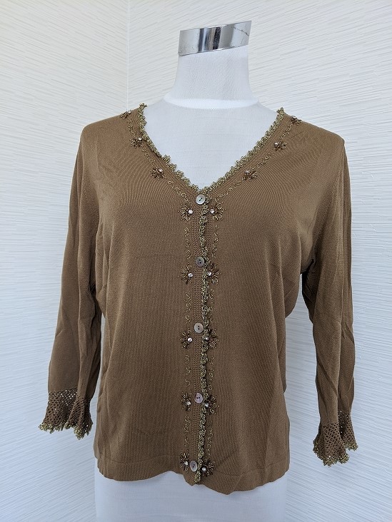 【送料無料】A131 ビジュー ビーズ フリル レース キラキラ ラインストーン カーディガン ニット キャラメルベージュ