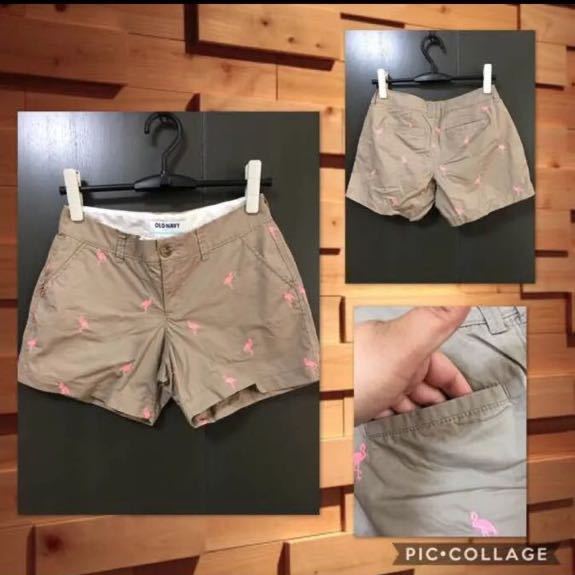 OLD NAVYの春夏物のショートパンツで、全体にフラミンゴの刺繍が入ったデザインです★