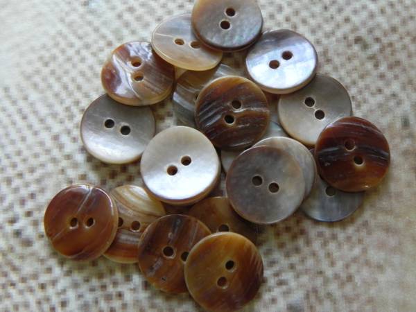 | ♪♪ナチュラル貝ボタン 茶色系 15mm 20個 生成のシャツに♪♪ | |||
