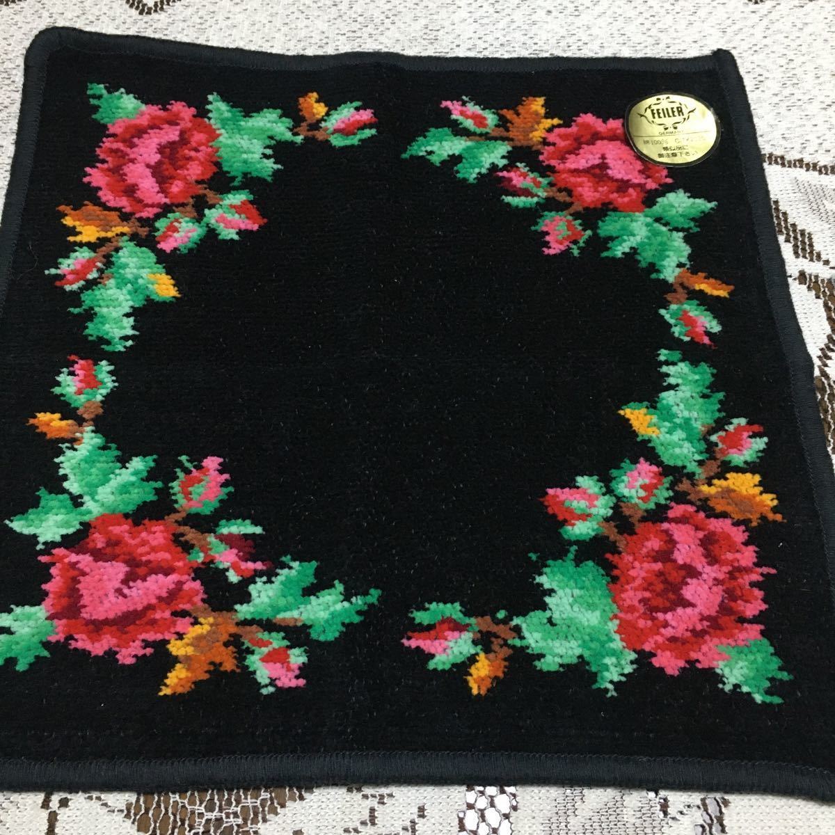 新品☆フェイラー FEILER レディースハンカチ 約25cm 薔薇