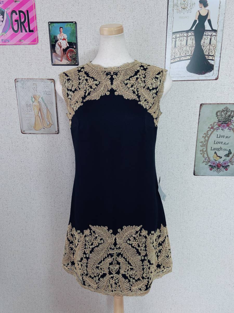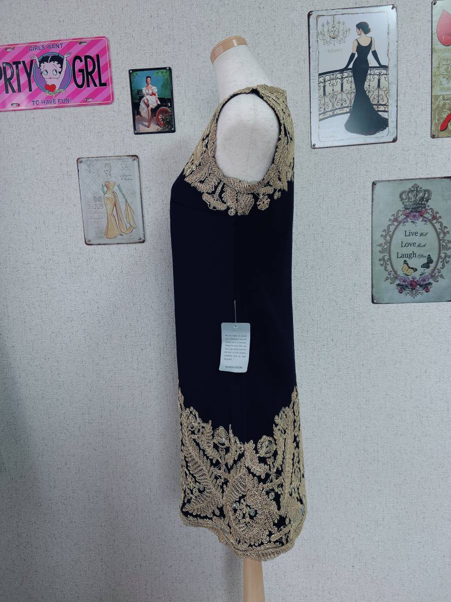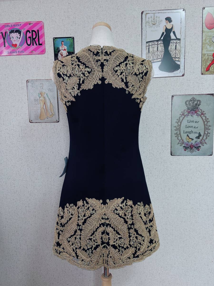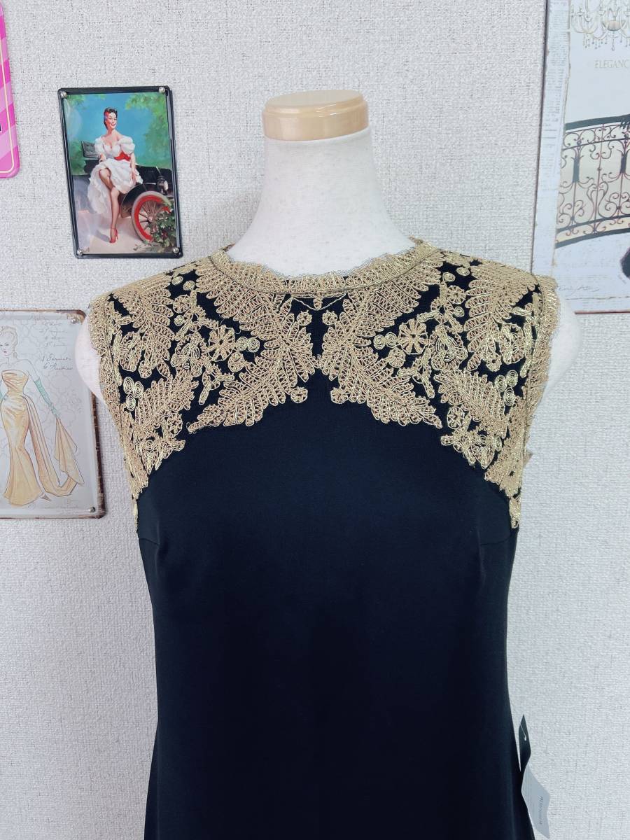 ネオプレイン素材にゴールドの刺繍レースがゴージャスなドレスです