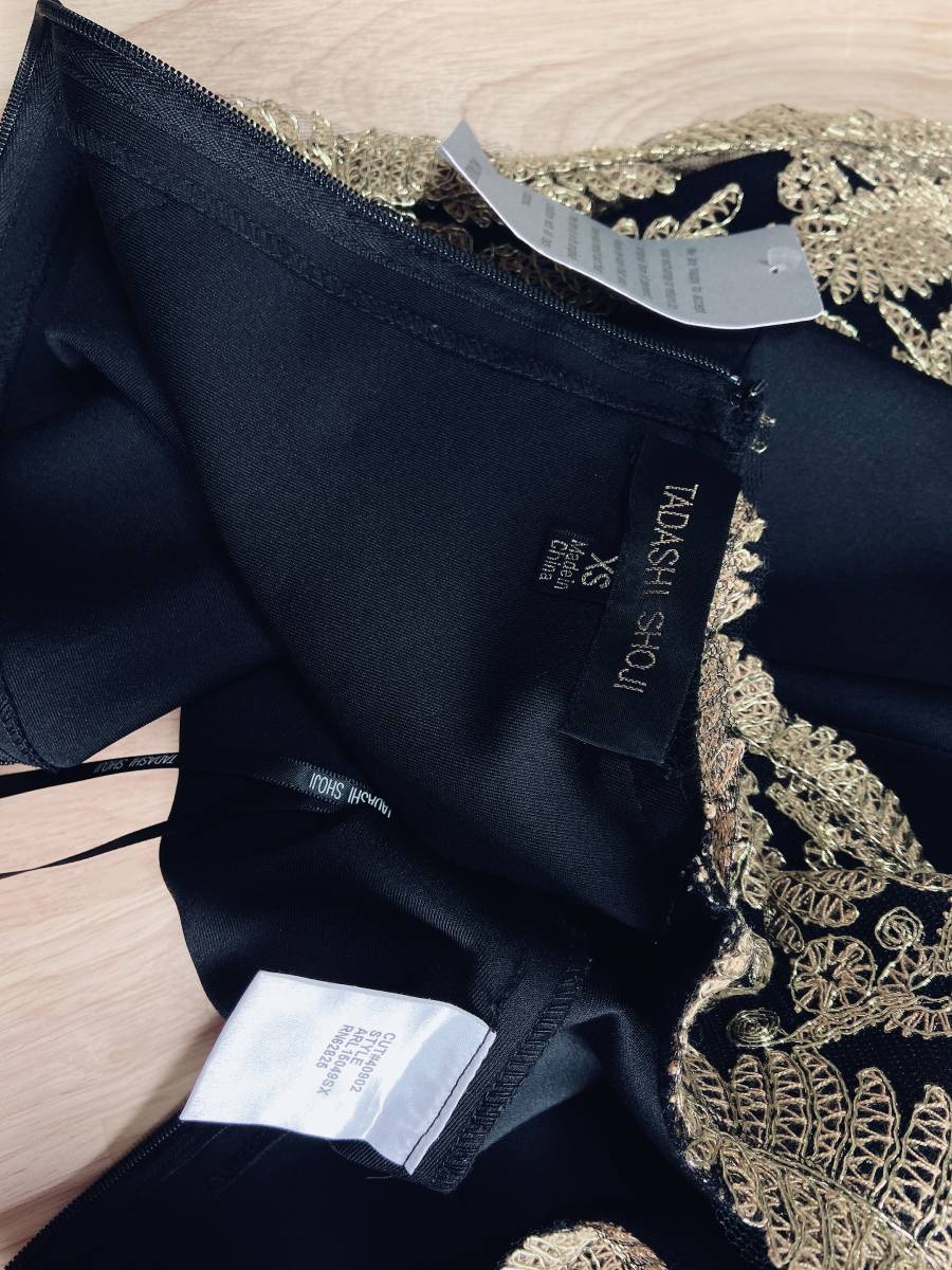 新品タグ付き XS/9~11号 Tadashi Shoji タダシショージ ワンピース ドレス ブラック/ゴールド レース ネオプレイン BGN338XNT