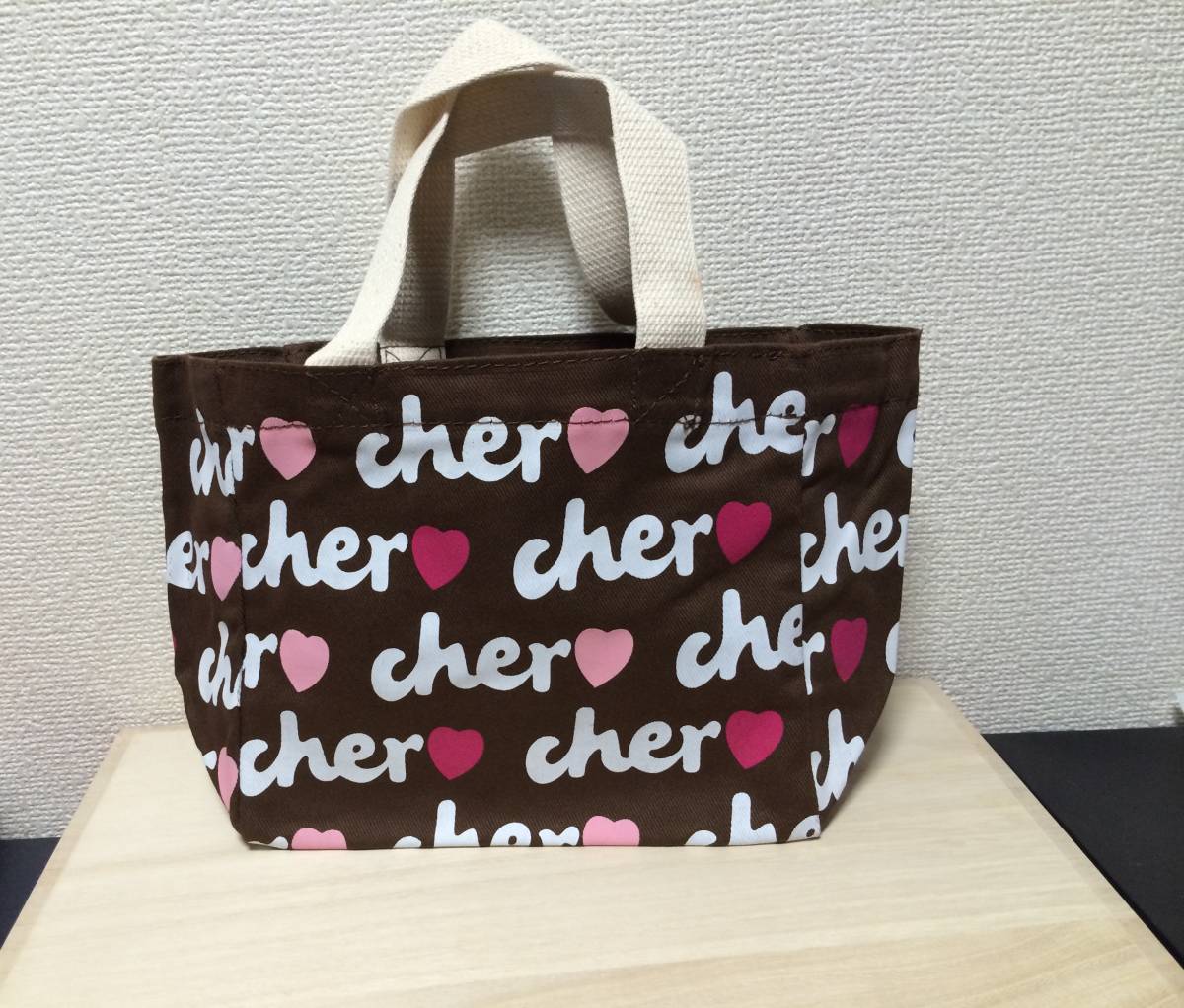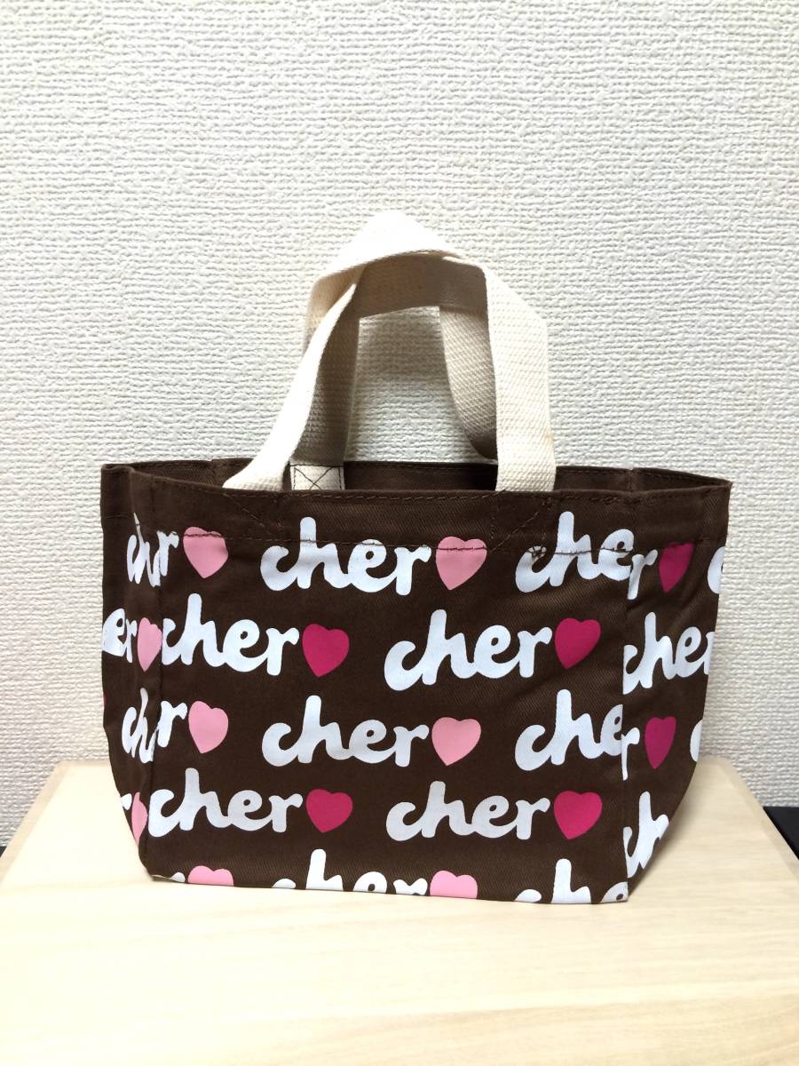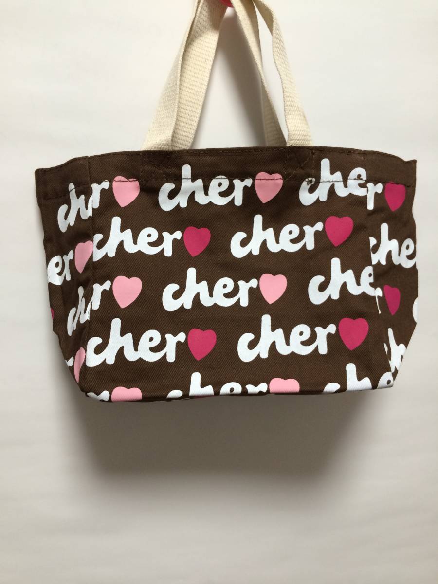 ※大人気☆Cher(シェル) トートバック 【ブラウンにホワイトでCherのロゴ、2タイプのピンクでハートを描いていてとってもキュートで可愛いです】Sサイズ