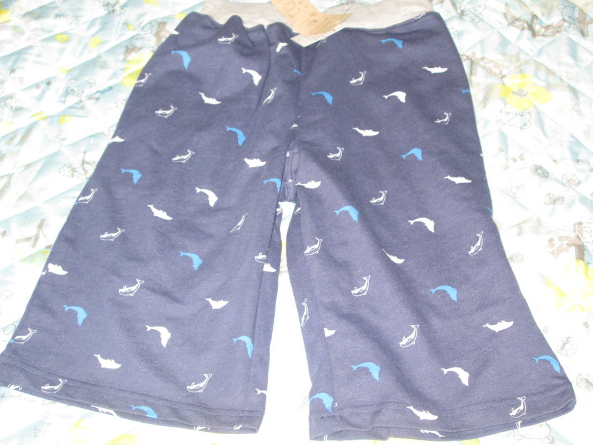 イルカ柄ハーフパンツ。ポケット 2。ウエストゴムタイプ。