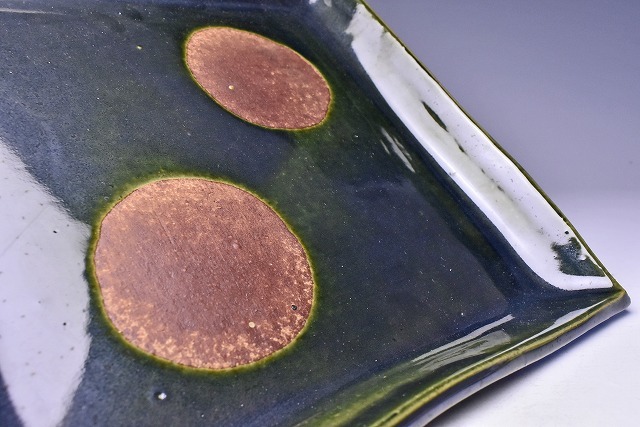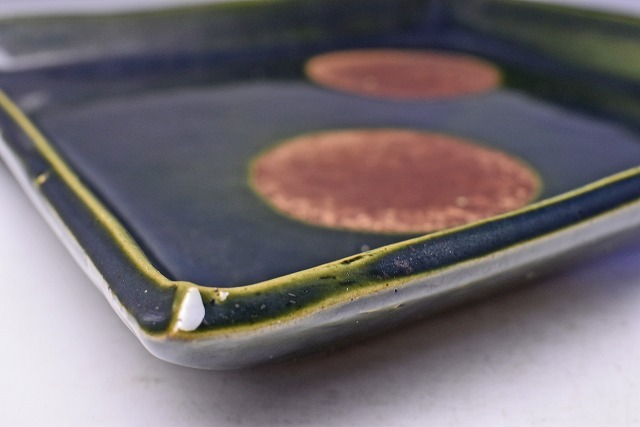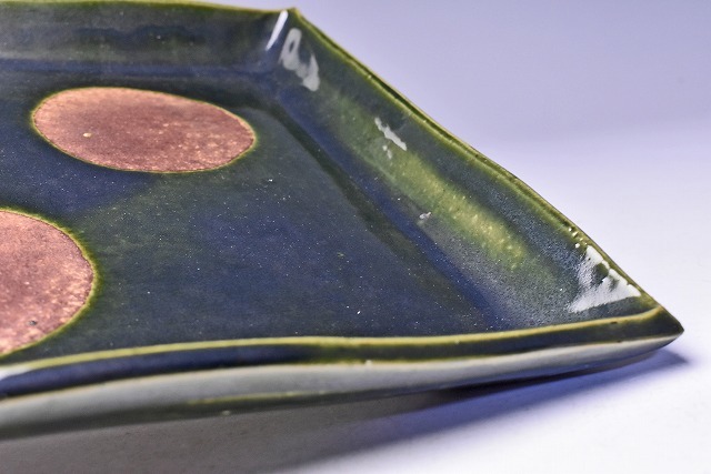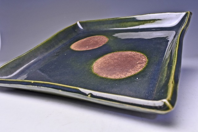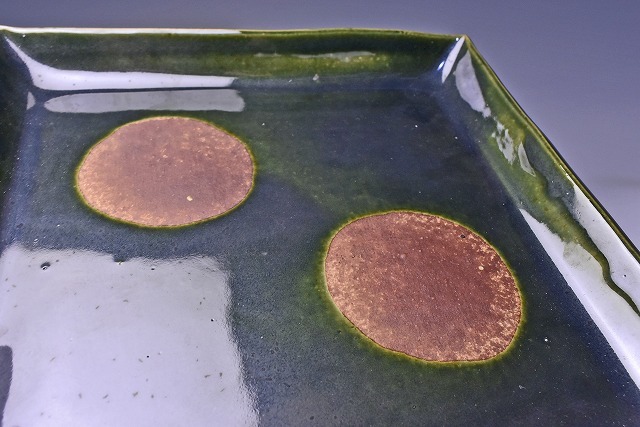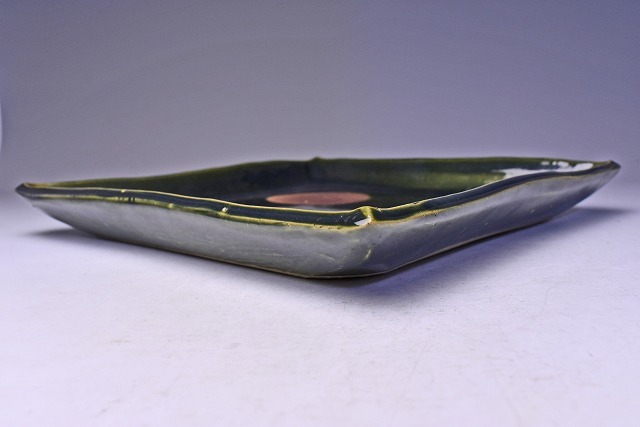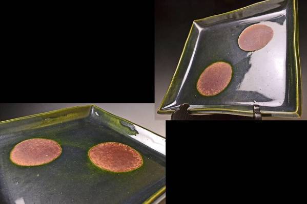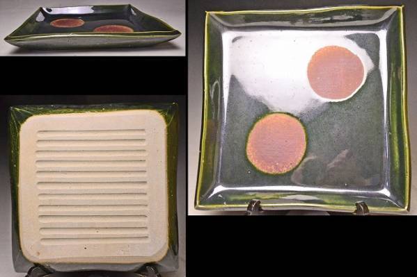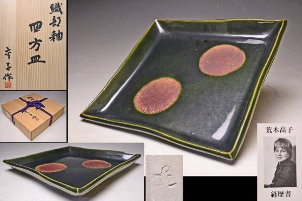 荒木高子 ★ 織部釉四方皿 ★ 共箱栞 ★ 希少作 ★ 検 須田剋太 丹波焼 黒陶 食器