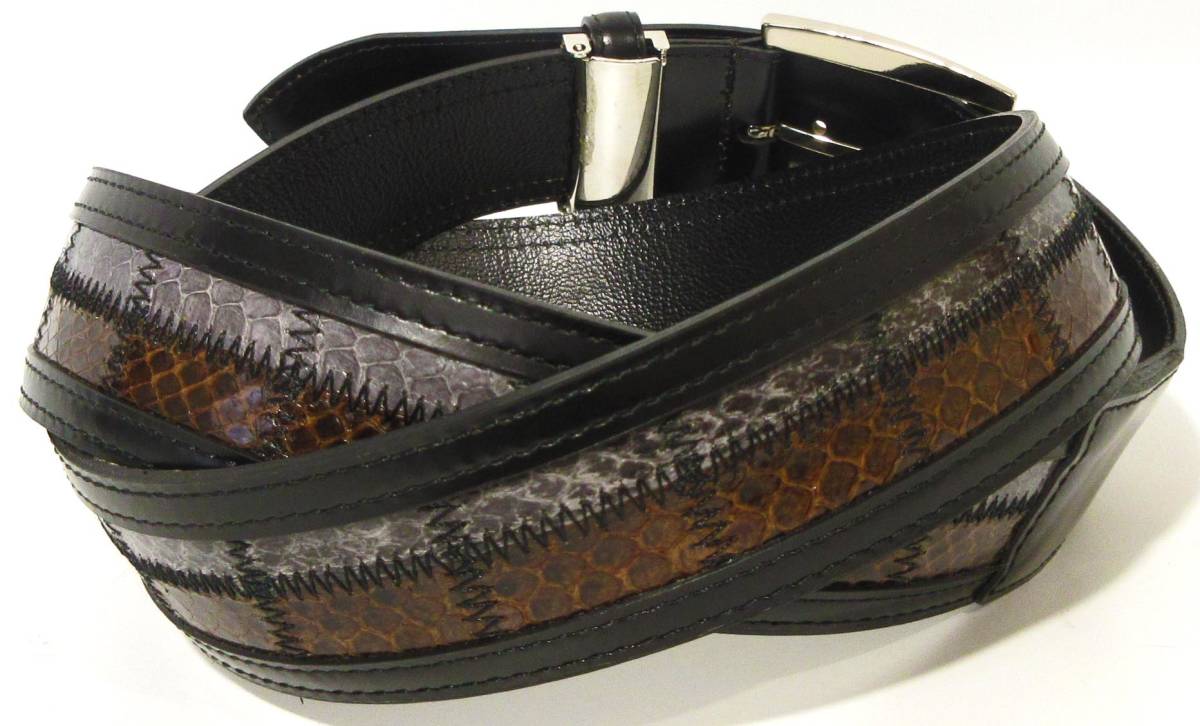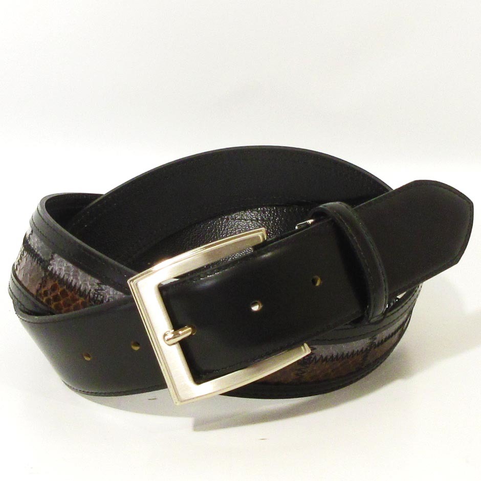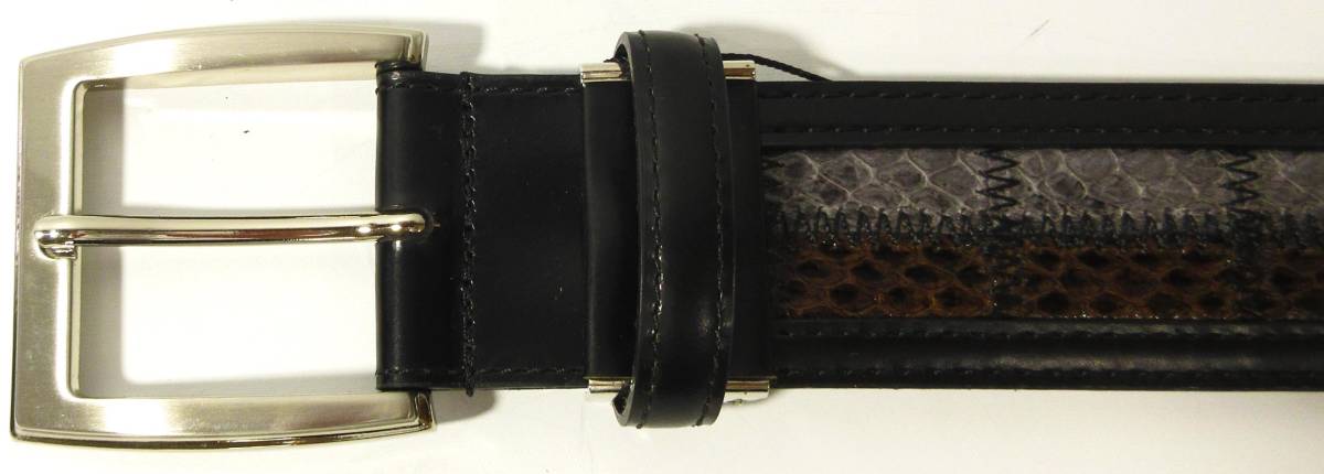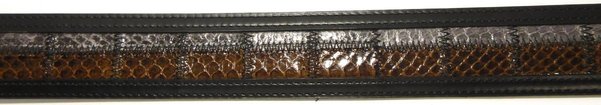 ★詳細 別注ロングサイズベルトです。牛革ベースのベルトにヘビ革(茶色とグレー部分)をあしらった高級感あふれる商品です。