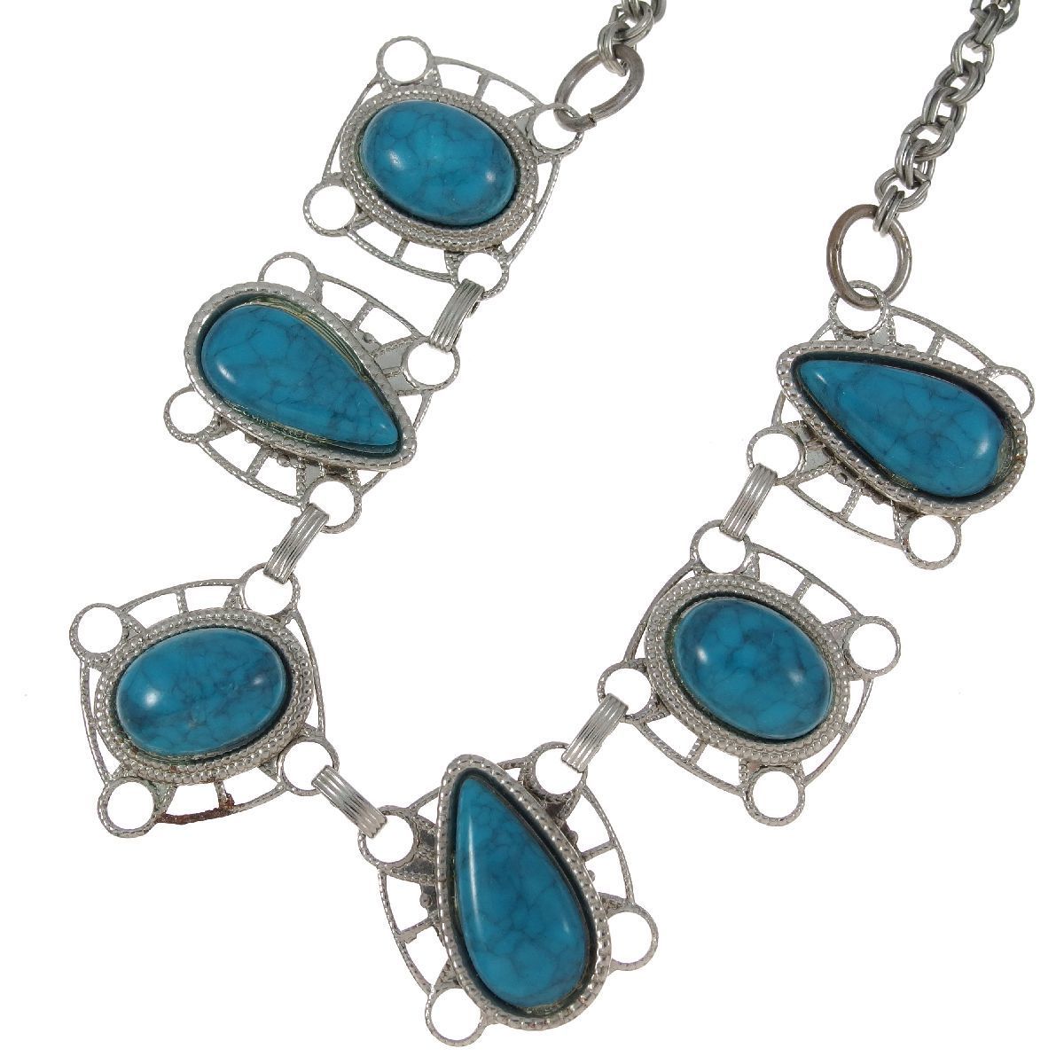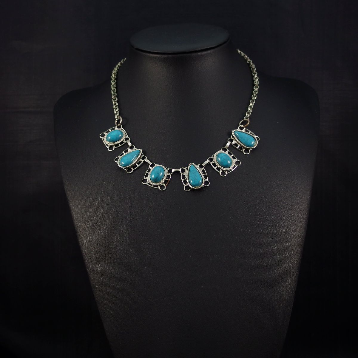 A3098◆ ターコイズ風ストーンでトップが飾られたヴィンテージネックレス ◆ 長さ約40㎝ ◆