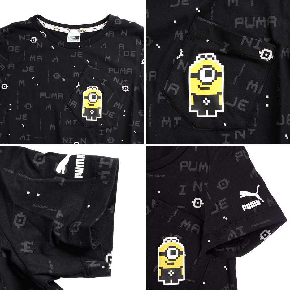 プーマ ミニオンズ コラボ キッズ 半袖Tシャツ 104 ブラック 総柄 黒 Minions 子供用 キッズ ジュニア 男女兼用