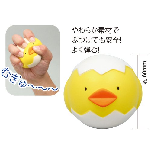 柔から素材のかわいいひよこちゃんです。当たっても安心安全。よく弾みます。ベビーちゃんにシニアの方の手の運動にも。