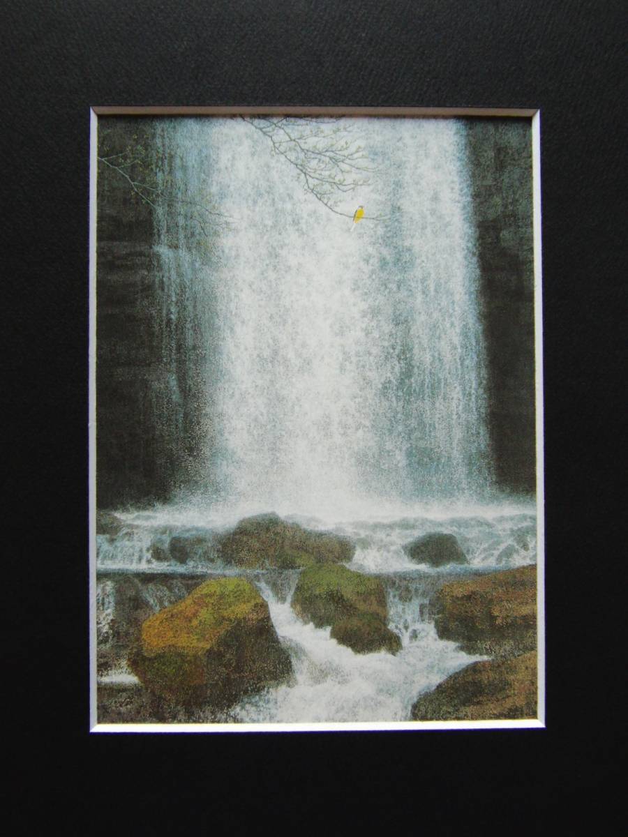 白井進、【水烟】、希少画集より、状態良好、新品高級額装付、送料無料、日本画 和風 日本画家、風景画 滝、iafa