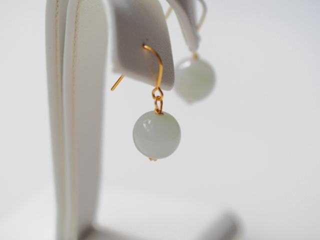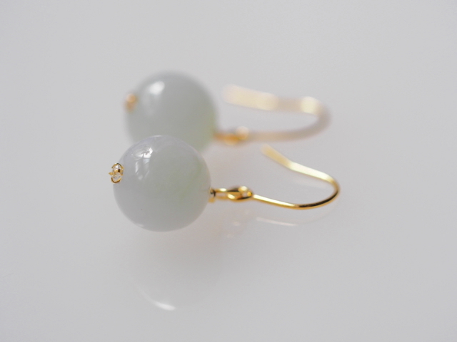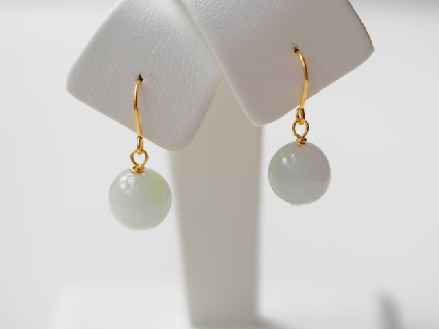 こちらは淡いホワイトカラー、天然無処理の翡翠ピアスです。 ・自然色翡翠: 9.5mm×2粒 ・ピアス全長:23mm ・金具素材:銀925(刻印がない)・SVピン×2本(CZ付)使用・ゴールドメッキ |