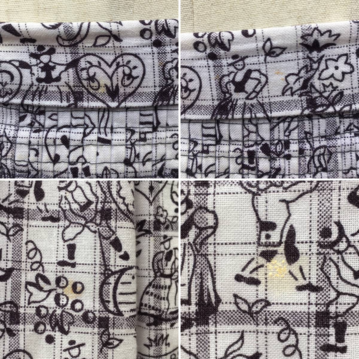部分的に小さなシミ汚れございますが全体が柄なのでよこはほとんどわからない程度です。9枚目、10枚目でご確認くださいませ。
