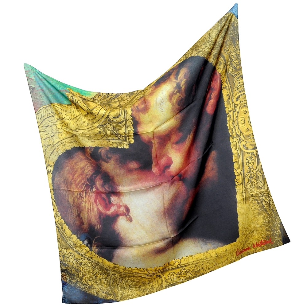 2012-13年・秋冬、ヴィヴィアン・ウエストウッドの、ヘラクレス・キッシング・スカーフです。 ヴィヴィアン・ウエストウッド国内直営店では、取り扱いの無い、 未入荷商品だったので、入手困難だと思います。 モスクワにある、プーシキン美術館が所蔵している、 フランソワ・ブーシェの名画、 【 HERCULES AND OMPHALE. 1732-1734(ヘラクレスとオムパレー)】を、 額縁オーブの中に配置した、ヴィヴィアンを代表するアイコンの一つですね。 素材は透け感のある、薄手のコットン・シルクになります。 沢山画像を掲載していますので、パソコンから、ご覧下さい。 (PayPayフリマからの観覧は、不可です) 他にも、巨大ブドワール等、 ヴィヴィアンはレア物のみ出品していますので、 良かったらご覧下さい。 ヴィヴィアン・ウエストウッド 出品一覧 | |