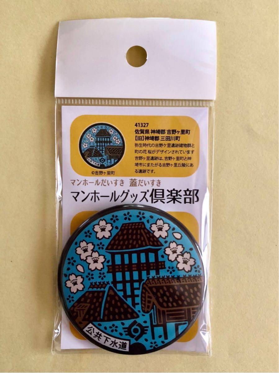 弥生時代の吉野ヶ里遺跡県建造群と町の花 桜がデザインされています。