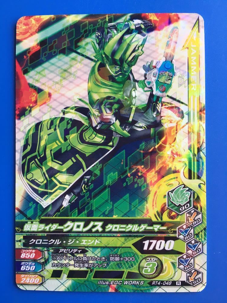 仮面ライダー、ガンバライジング・第RT4弾からNo.048《仮面ライダークロノス・クロニクルゲーマー》の登場です。発送は、普通郵便を利用します。(特にご希望のない場合)おとりまとめも可能ですが、送料に変動する場合がございます。また、送料のご請求は、自宅での計量を基準にご請求させていただいておりますので、実際の金額と差異が出る場合もございます。予めご了承ください。他にも多数出品中です。まとめてこの機会にいかがでしょうか?ご質問お待ちしております。