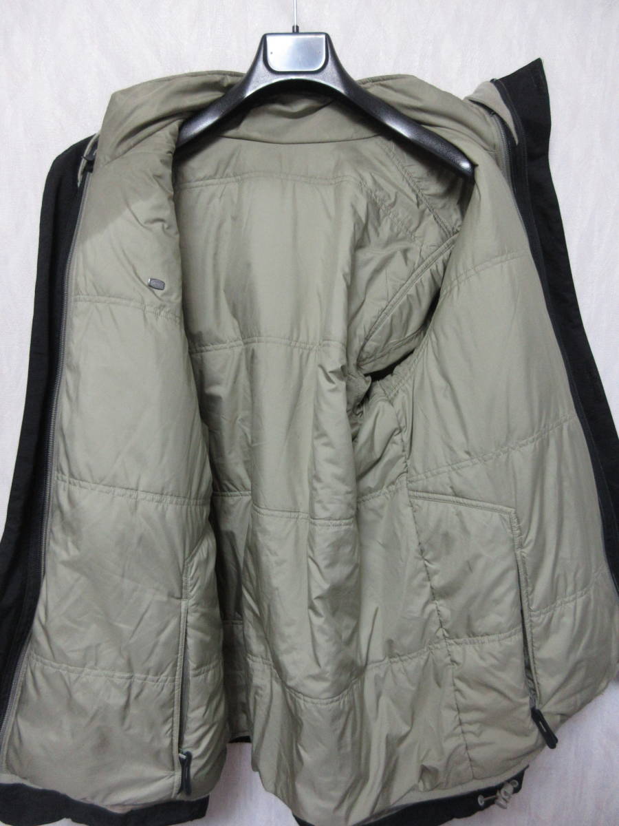 フード裏の変色、ライナー袖口の毛羽立ちがあります。