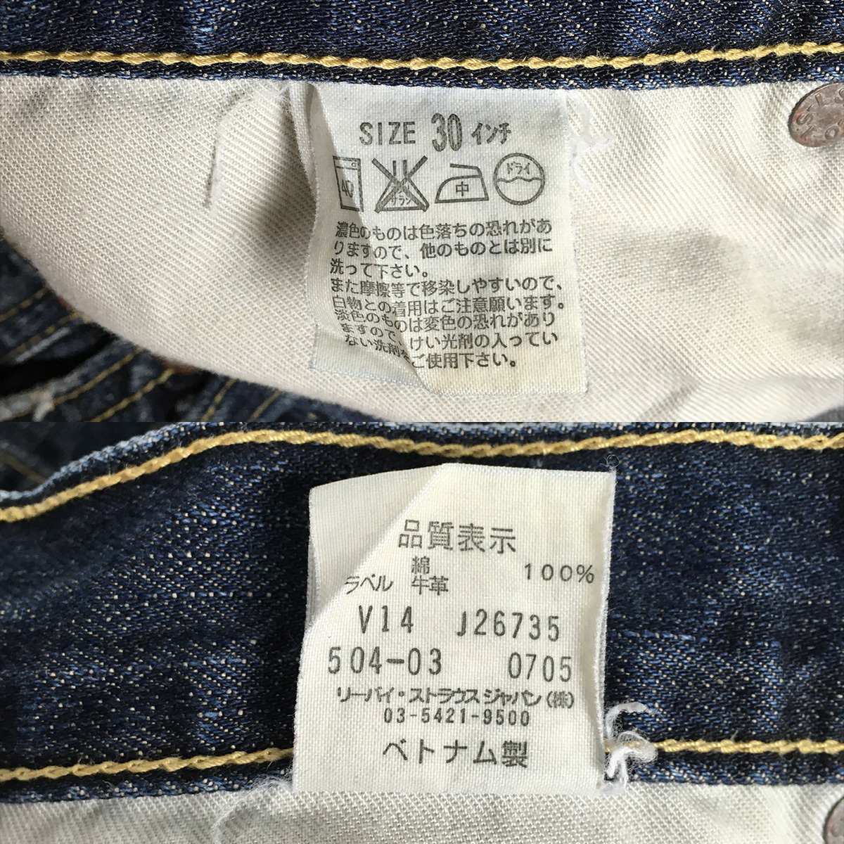 Levi's リーバイス 504-03 05年 デニム パンツ ジーンズ W30 L33 革パッチ ダメージ加工