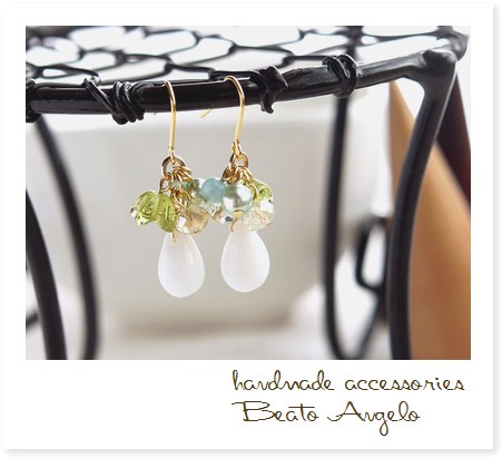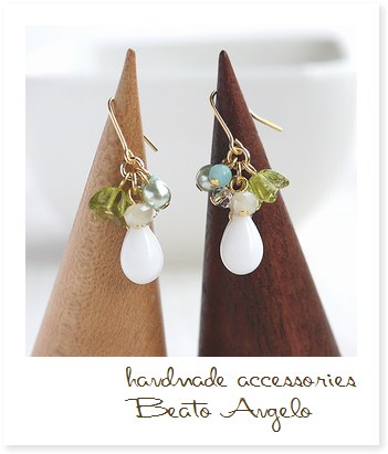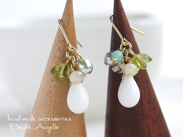◆+angelo+チェコドロップとフラワーのピアス(p369)チョークホワイト G d001 天然石 アマゾナイト チタン 樹脂 イヤリング