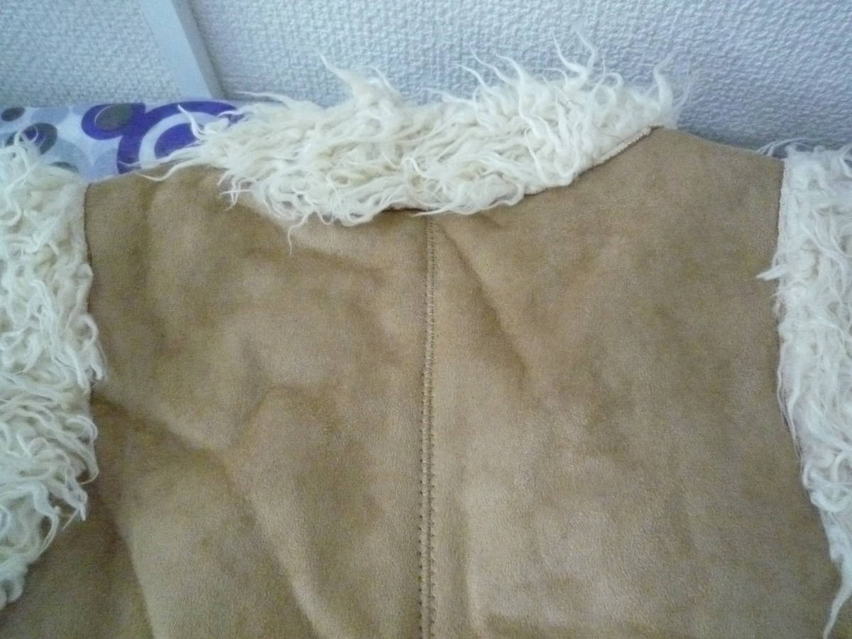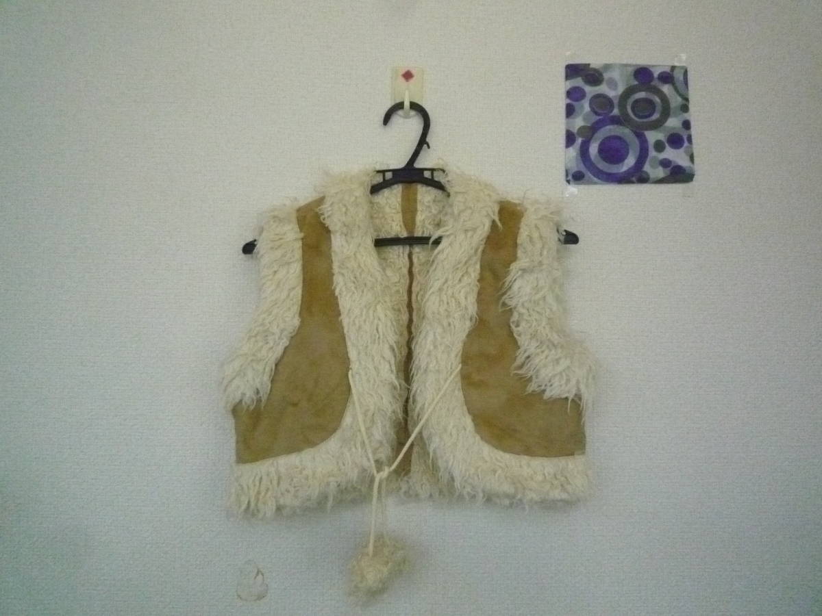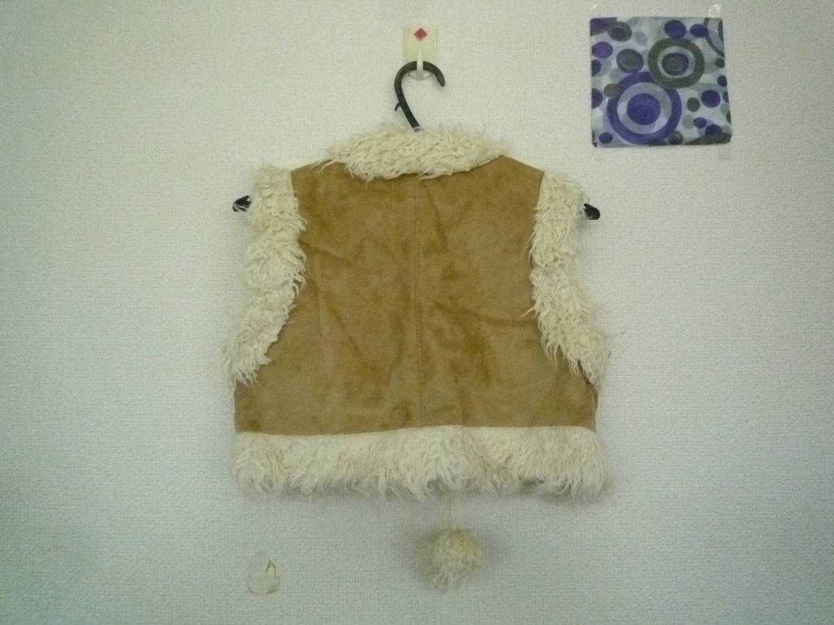 ★ CRAZY ANGEL フェイクファー 羊毛風(くるくる毛糸)ベージュ系 スェード調 ベスト ボンボン付 ( L )