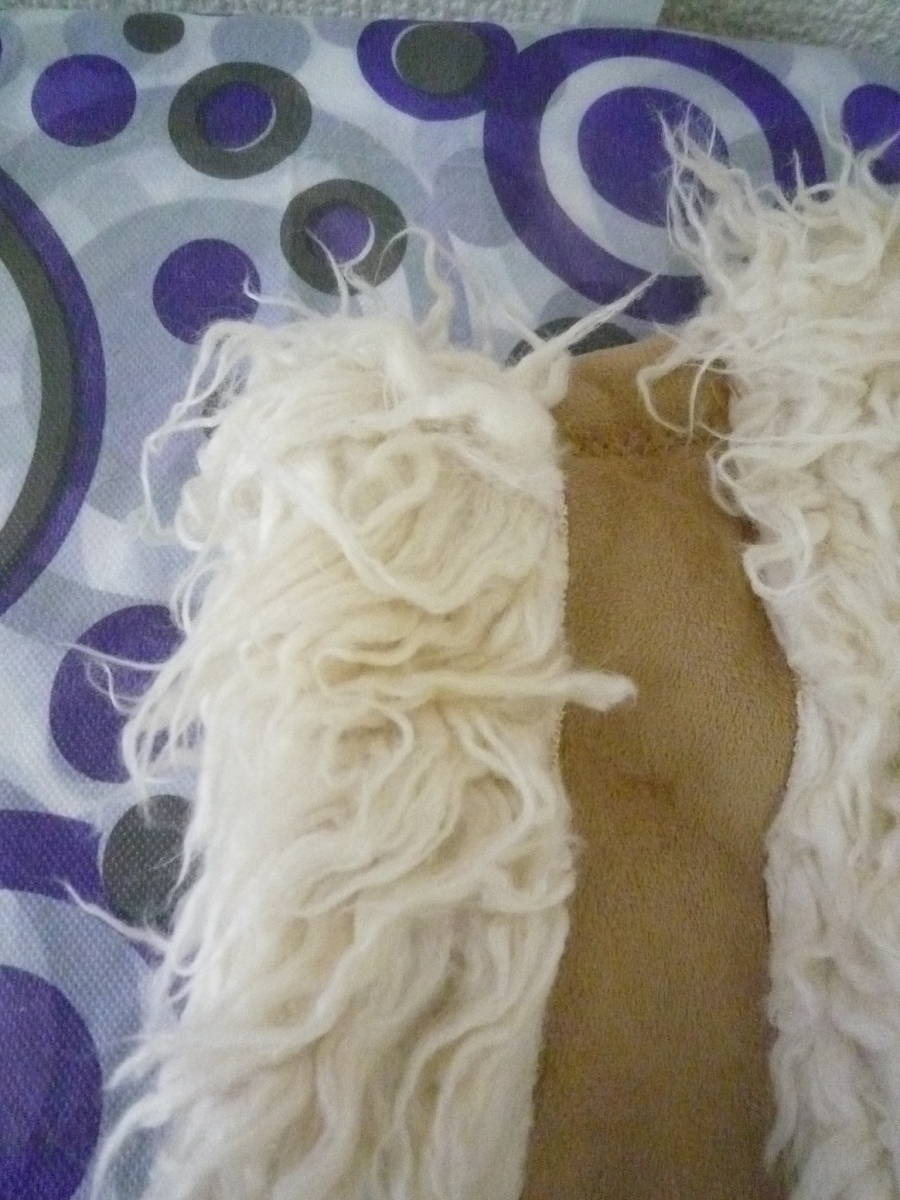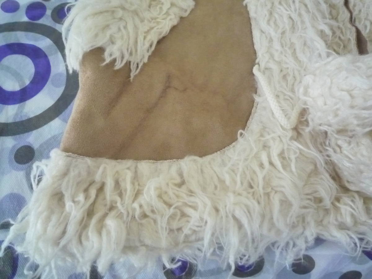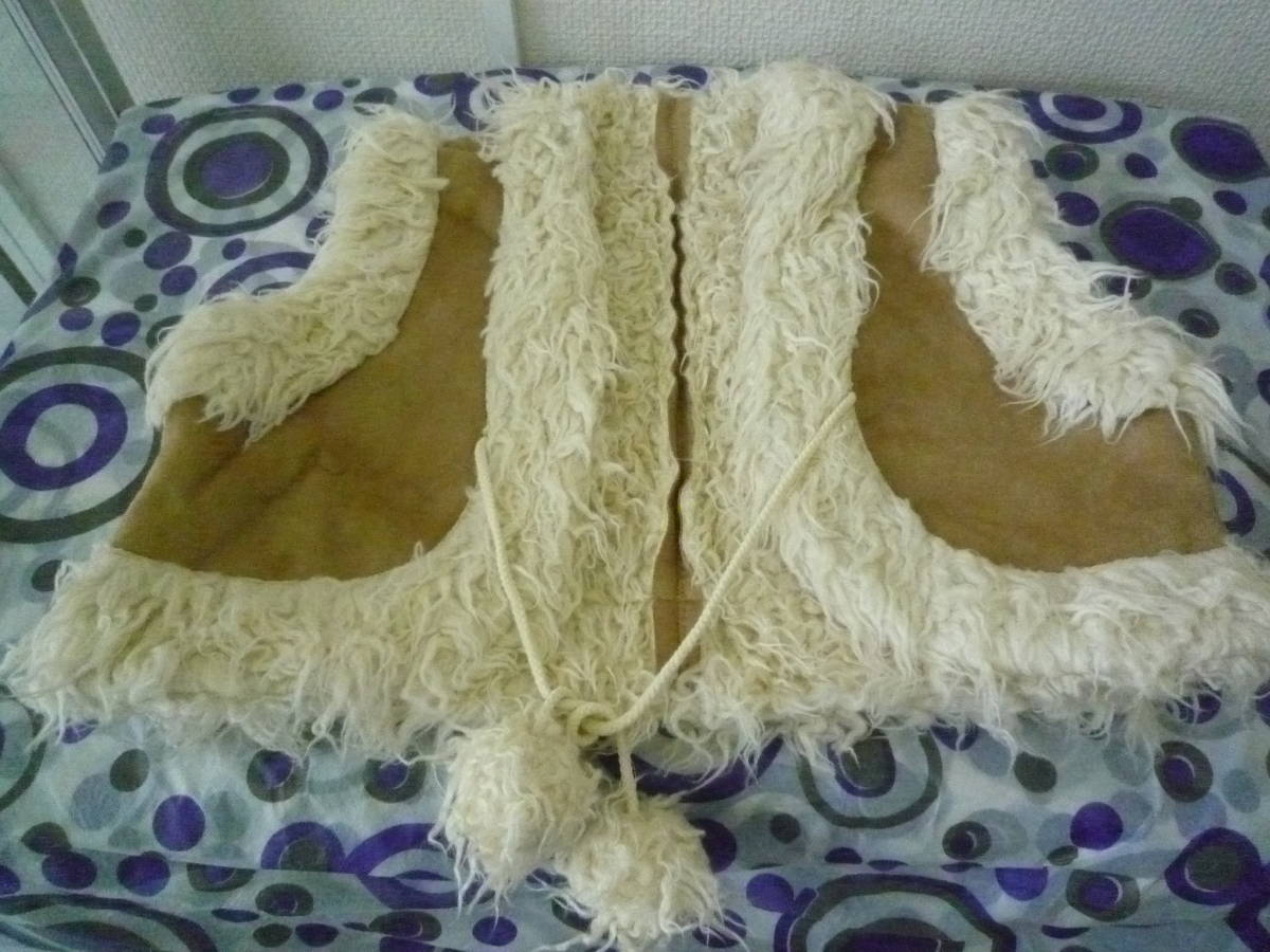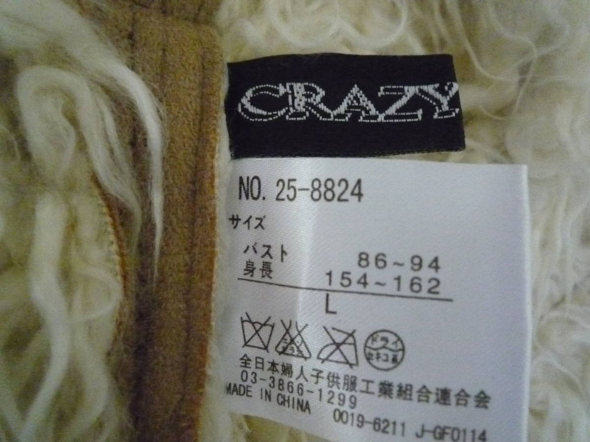 ★ CRAZY ANGEL フェイクファー 羊毛風(くるくる毛糸)ベージュ系 スェード調 ベスト ボンボン付 ( L )