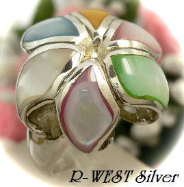シルバー925銀のシェル貝殻入り リングtypeD[パステル フラワー]20号ラスト1個/シルバージュエリーALL50%OFF