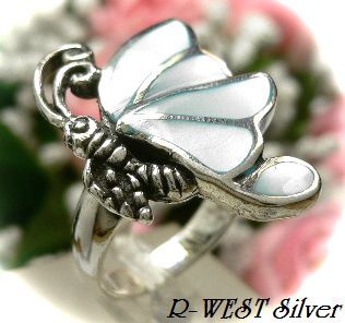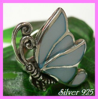 シルバー925銀のシェル貝殻入り蝶ちょうちょ リング[ブルー]12号.13号より/シルバージュエリーALL50%OFF