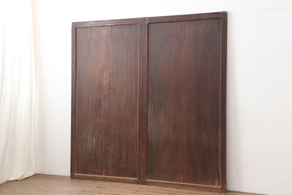 R-037112 アンティーク建具 和製アンティーク 明治大正期 杉材一枚板のシンプルな板戸2枚セット(建具、引き戸)(R-037112)