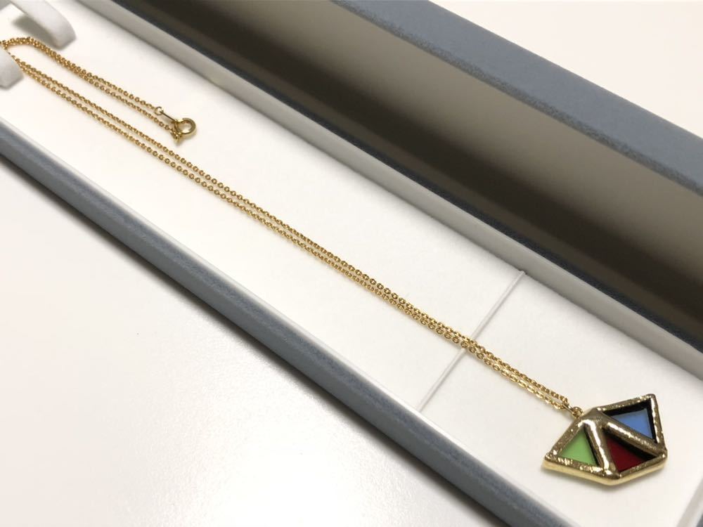 ステンドグラスを使用した、デザインペンダントネックレスです。