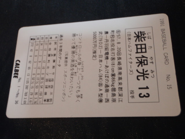 1991 カルビーベースボールカード No15 柴田保光 日本ハム